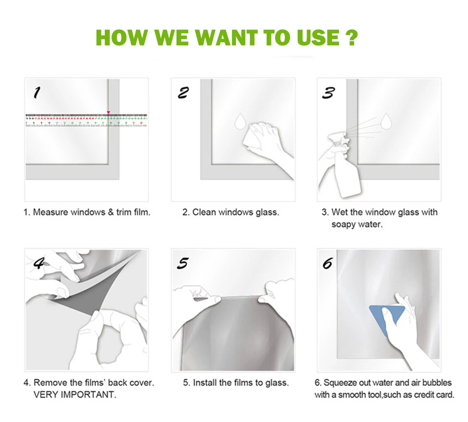 30*100 см Примечание: цвет этой оконной пленки показан только на солнце светильник --- 1>. Получите легкий вид матового стекла. --- 2>. Без клея, легко фиксируется и удаляется --- 3>. Требуется ракель для нанесения оконной пленки. --- 4>. Мягко фильтрует светильник, обеспечивая при этом PrivacyTo гарантирует, что пленки прилипают к окнам: --- 1>. Чистое стекло для окон. --- 2>. Прохладная, гладкая поверхность без текстуры любого вида. --- 3>. Не допускайте касания рамы Windows. Как установить Наши пленки: --- 1>. Измерьте окна/пленку. --- 2>. Чистое стекло для окон. --- 3>. Влажное стекло с мыльной водой. --- 4>. Удалите пленку --- 5>. Установите пленку на стекло. --- 6>. Скребк с гладкой оснасткой обзор --- без клея, легко зафиксировать и удалить --- получить вид матового стекла с легким сделать это. --- Требуется монтажный скребок. (Распакованный, без шпателя в комплекте) --- 99% УФ-защита.