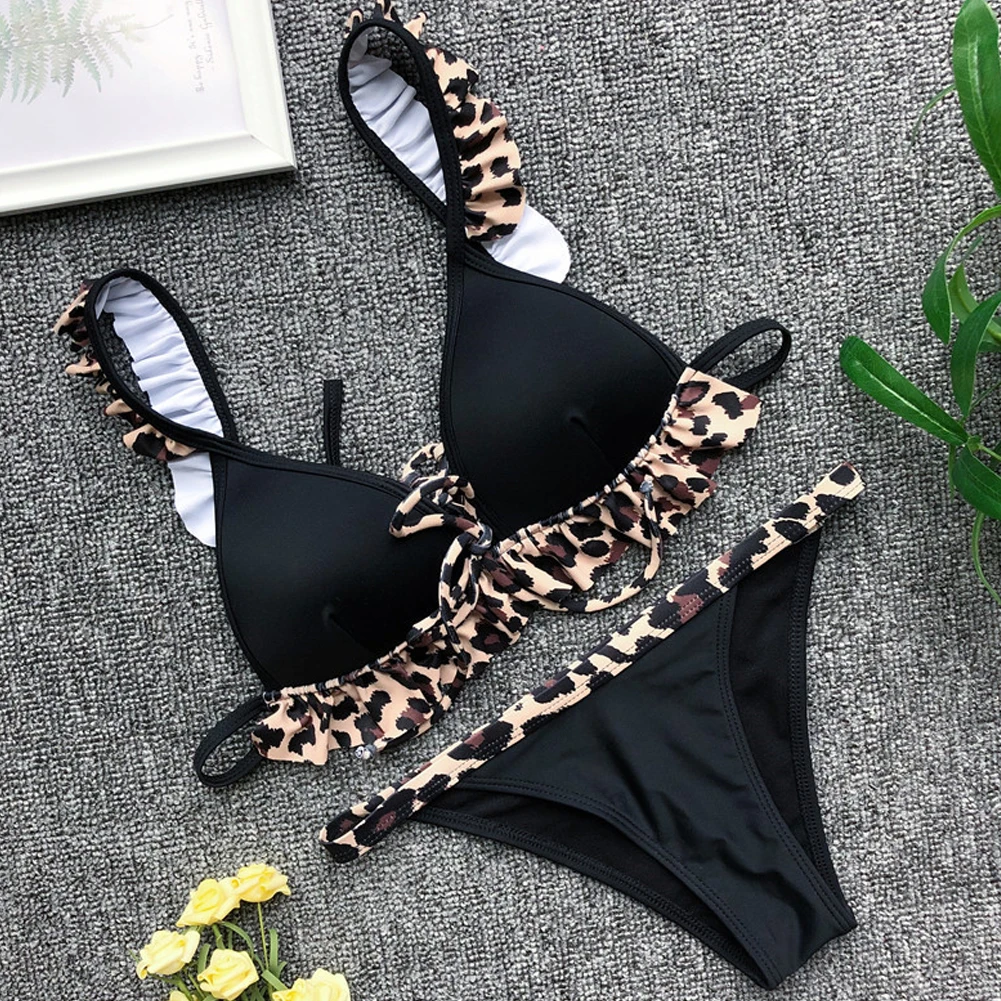Здравствуйте! Добро пожаловать в наш магазин! Основной цвет: черный, белый, красный, синий Стиль: женский комплект бикини с оборками Материал: полиэстер и спандекс Посылка включает в себя: 1 *Комплект бикини