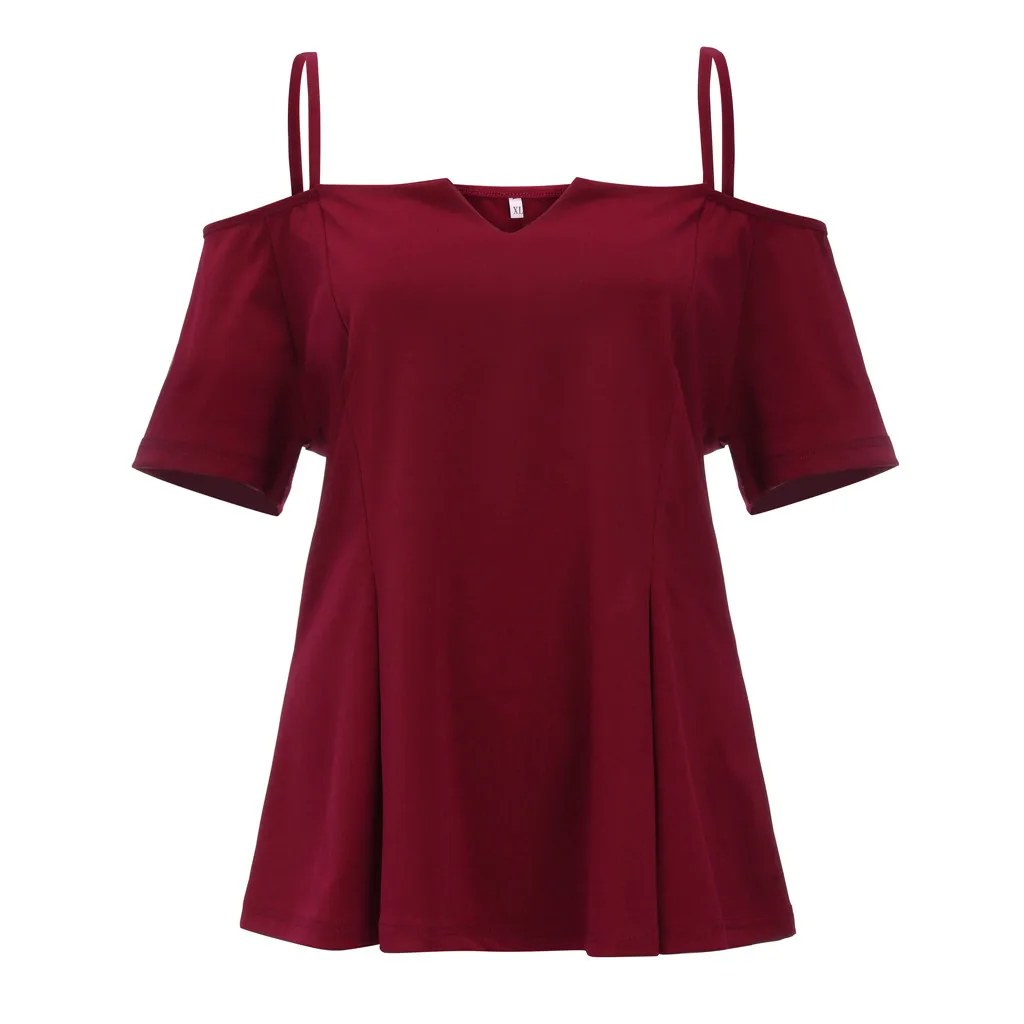 1,1. Особенности: большие размеры, короткий рукав, открытыми плечами, Однотонная футболка на бретельках, футболка-пуловер, повседневные топы, повседневная одежда, стильный и модный дизайн, Летняя Повседневная блузка.
