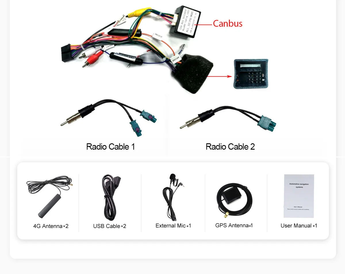 Примечания: функция декодирования canbus. Он не может создать функцию, которой не обладает оригинальное радио вашего автомобиля. Если оригинальное радио вашего автомобиля может поддерживать и отображать выше функции, наш главный блок также может поддерживать и отображать выше функции. Если нет, вам нужно купить внешние устройства, такие как OBD и TPMS.
