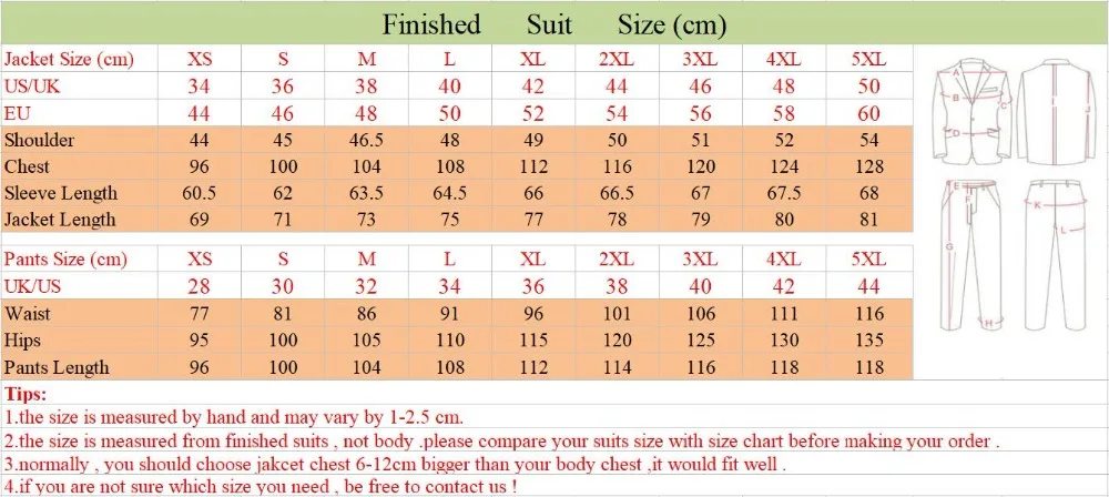 Примечание:Если вы обнаружите, что вышеуказанные стандартные размеры вам не подходят, вы просто измеряете свое тело в соответствии с приведенной ниже таблицей размеров, а затем покажете нам размер тела. Мы можем изготовить на заказ костюмы для вас. И цена такая же!