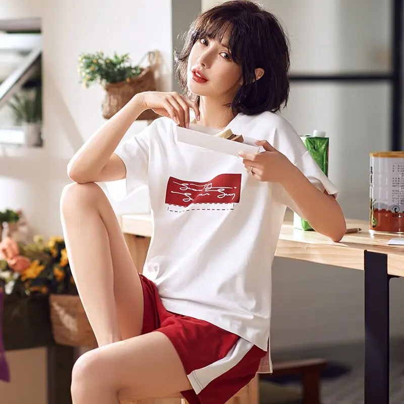 Мягкая хлопковая Женская одежда для сна Летняя женская пижама наборы 2019 новый женский костюм с коротким рукавом пижамы Женская Ночная одежда домашняя одежда