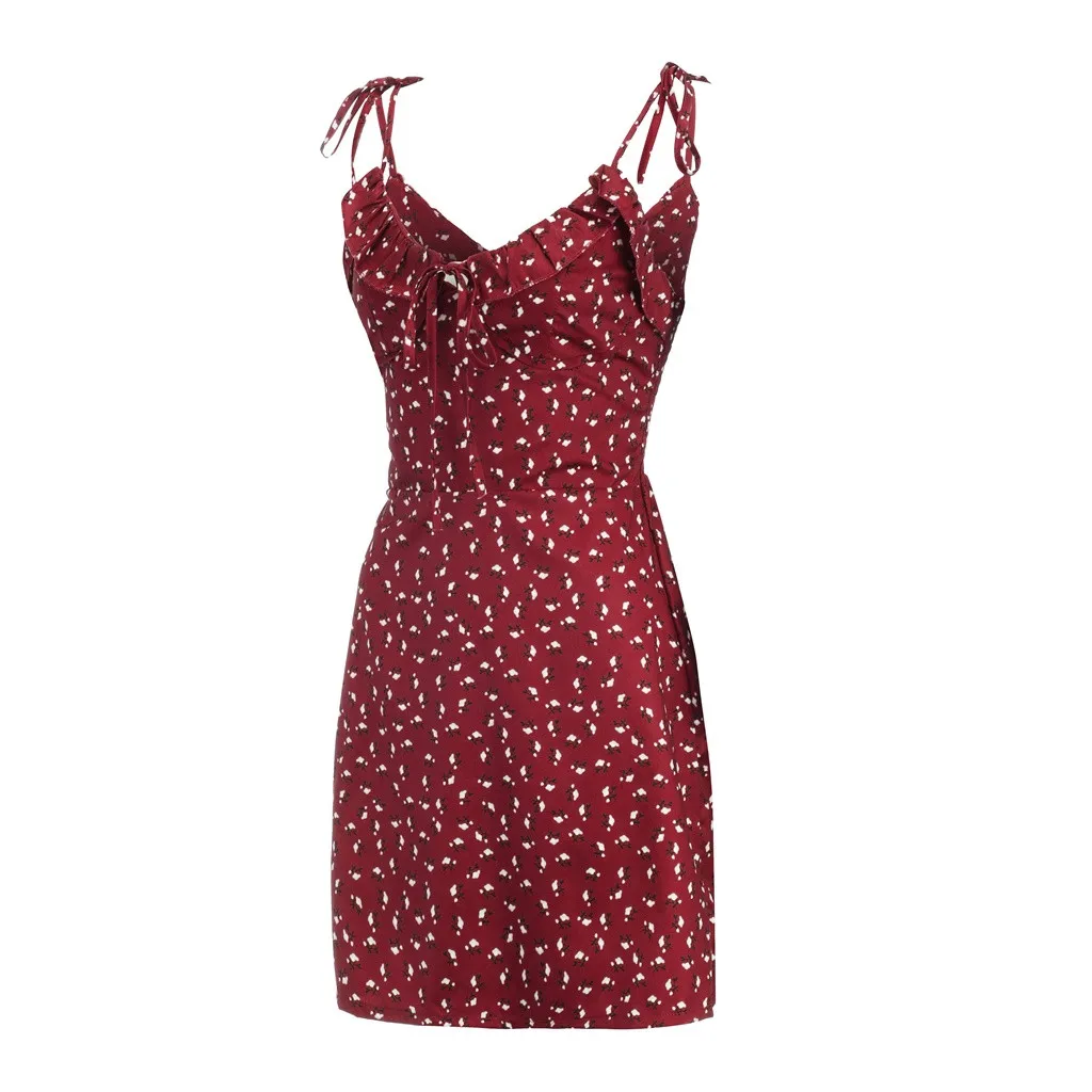Модные женские кружевные без рукавов с открытыми плечами Ruch ремешок с цветочным принтом мини-платье