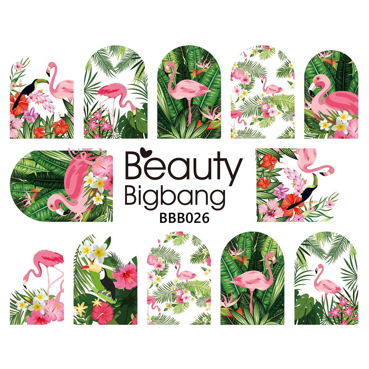 Наклейка для ногтей BEAUTYBIGBANG в виде фламинго, растительное изображение, натуральный аксессуар для дизайна ногтей, Водные Наклейки-Слайдеры для ногтей