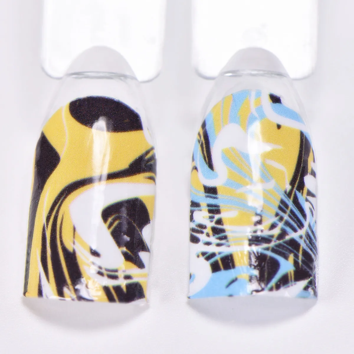 2. Снимите пленку с водяных наклеек для ногтей, Вырежьте узоры из листа;