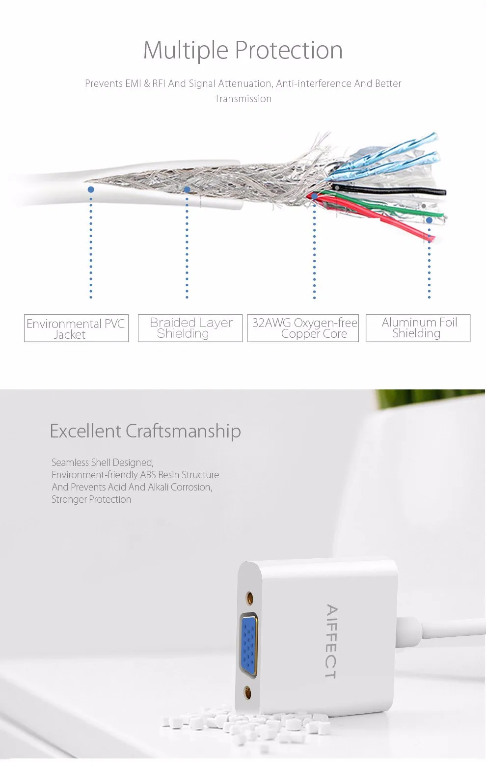 2. Портативный дизайн (длина 0,68 футов), не требуется адаптер питания, не требуется программное обеспечение, предлагает компактное и портативное решение для подключения дисплея VGA высокой четкости
