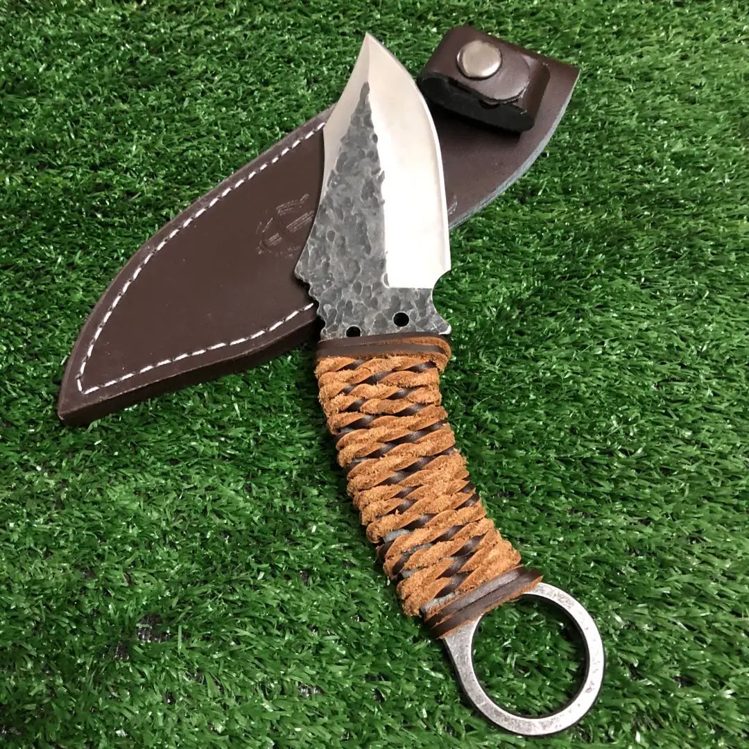 Полная длина: 22 см Длина лезвия: 9 см Уровень защиты: дамасской стали Уровень защиты: 59HRC Ножны: кожаный нож