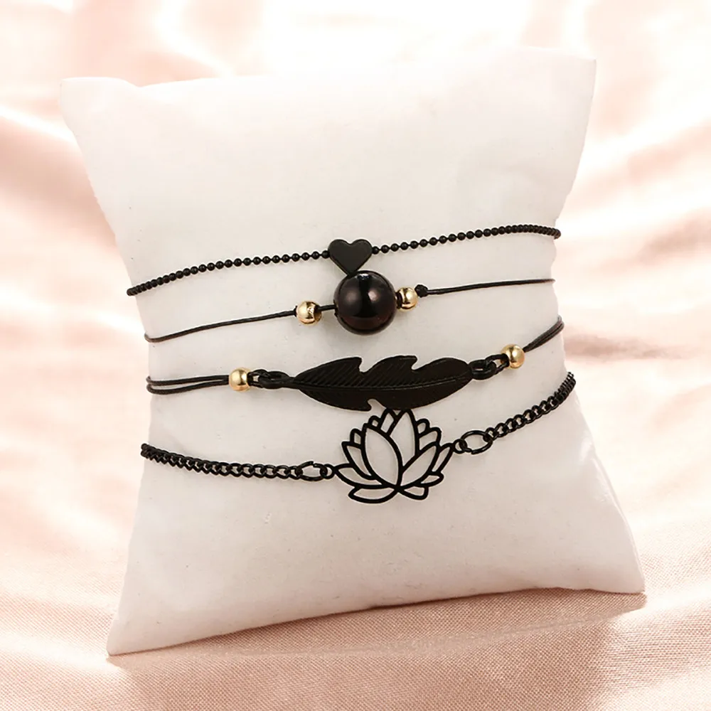 Черное сердце любовь ажурный мяч с лотосом Листья Браслет четыре набора