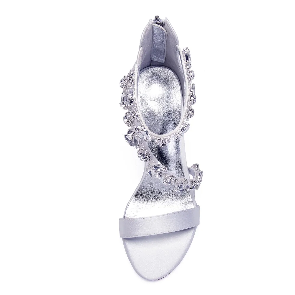 Элегантный глянцевый сатин с блестками, с открытым носком, на молнии сзади с ремешками свадебные туфли на высоких каблуках; Женские босоножки для невесты, каблук составляют приблизительно: 10,5 см (4,13 дюйм (ов)