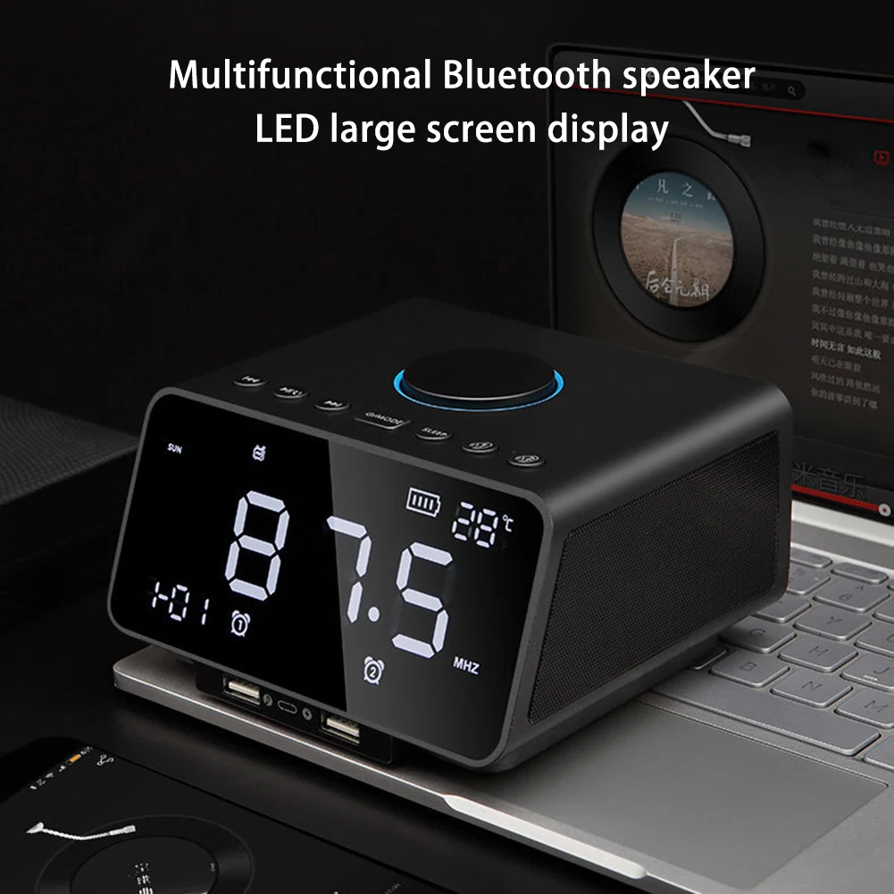 Часы, дата, день недели, индикация температуры в помещении, двойной Будильник Напоминание функция Bluetooth динамик с 5,5-дюймовый Диммируемый светодиодный дисплей, полный дисплей положения с энергосберегающий светодиодный свет, высокая яркость белого света до 50 люменов, полностью оптимизированный угол наклона, позволяет легко смотреть по желанию; Функция автоматического отключения сна.