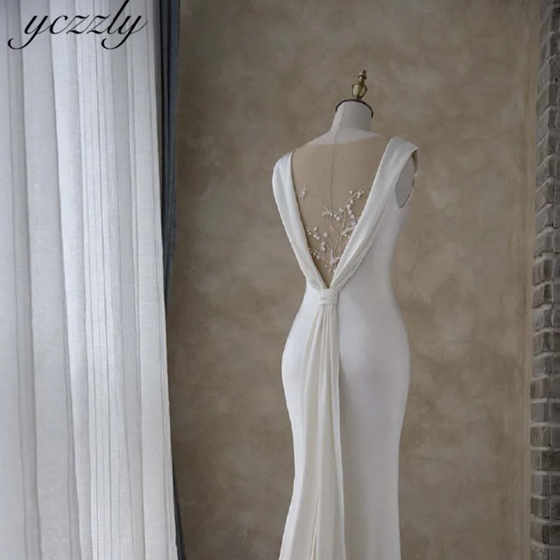 Простое иллюзионное свадебное платье русалки размера плюс 2019 длинное мягкое атласное свадебное пляжное платье с цветами Robe De Mariage YW63