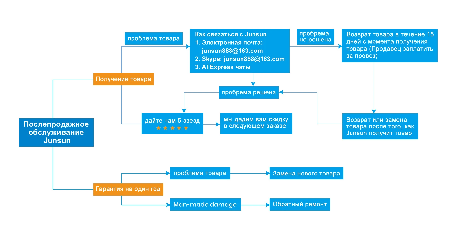 > Почему выбрать Junsun? 1. AliExpress Топ 10 брендов, стоит доверять; Junsun Официальный магазин имеет 1000 K + вентиляторы, Популярные среди клиентов. 2. Все продукты прошли строгий тест качества перед отправкой, убедитесь, что высокое качество. 3. После проверки оплаты будет отправлен в течение 48 часов со склада Китая, и 24 часа с местного склада, ES, EU, RU, PL склад доставки. (рабочее время) 4. Если продукт имеет проблему в течение 365 дней после подтверждения получения, мы заменим новую машину непосредственно для вас, но пожалуйста, свяжитесь с нами, чтобы решить проблему после продажи. Эта гарантия не применяется к повреждению, причиненному в результате аварии, злоупотребления, неправильного использования или модификации продукта.