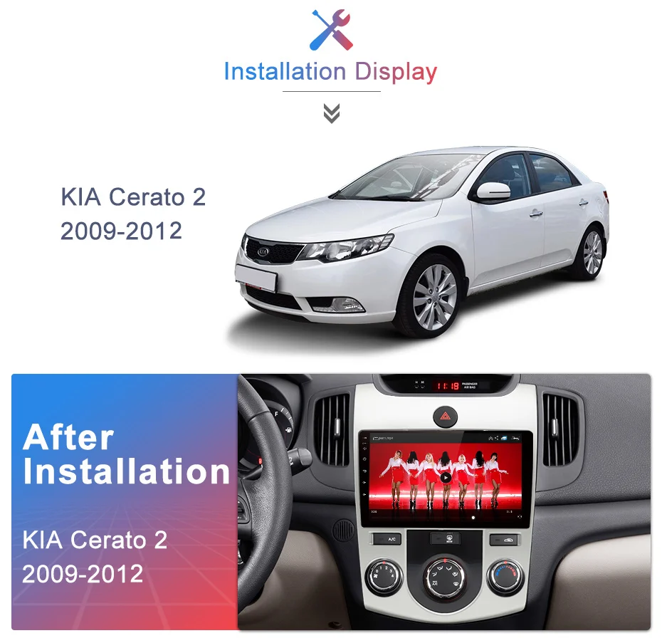 >> Junsun V1 для KIA Cerato 2 2009 2010-2013 Функция 9-дюймовый 2.5D емкостный экран + четырехъядерный процессор 1.2 ГГц + DDR3 1 ГБ (2 ГБ дополнительно) Flash + 16 ГБ памяти (32 ГБ дополнительно) + Встроенный Wi-Fi (4 ГБ сеть дополнительно) + GPS-навигация (обновление карты, только поддержка бренда Junsun) + управление рулевым колесом + зеркальная связь + Bluetooth + встроенный микрофон + FM / AM + RDS (опция) + поддержка функции USB ADAS DVR + функция Europe DAB + 1080P Vedio Play + HD 1024 * 600 + система контроля давления в шинах >> Язык экранного меню Русский, английский, испанский, итальянский, французский, немецкий, китайский, эстонский, польский, филиппинский, финский, корейский, голландский, хорватский, латышский, литовский, румынский, норвежский, португальский, японский, шведский, тайский, турецкий, украинский, венгерский. >> 24H * 7 Сервисная поддержка В Junsun наша цель - продолжать усердно работать над созданием инновационного аппаратного и программного обеспечения радиоприемника для автомобильного мультимедиа, которое обеспечит вам индивидуальный подход. Мы предоставляем БЕСПЛАТНЫЕ обновления для прошивки, программного обеспечения, карт GPS-навигации.