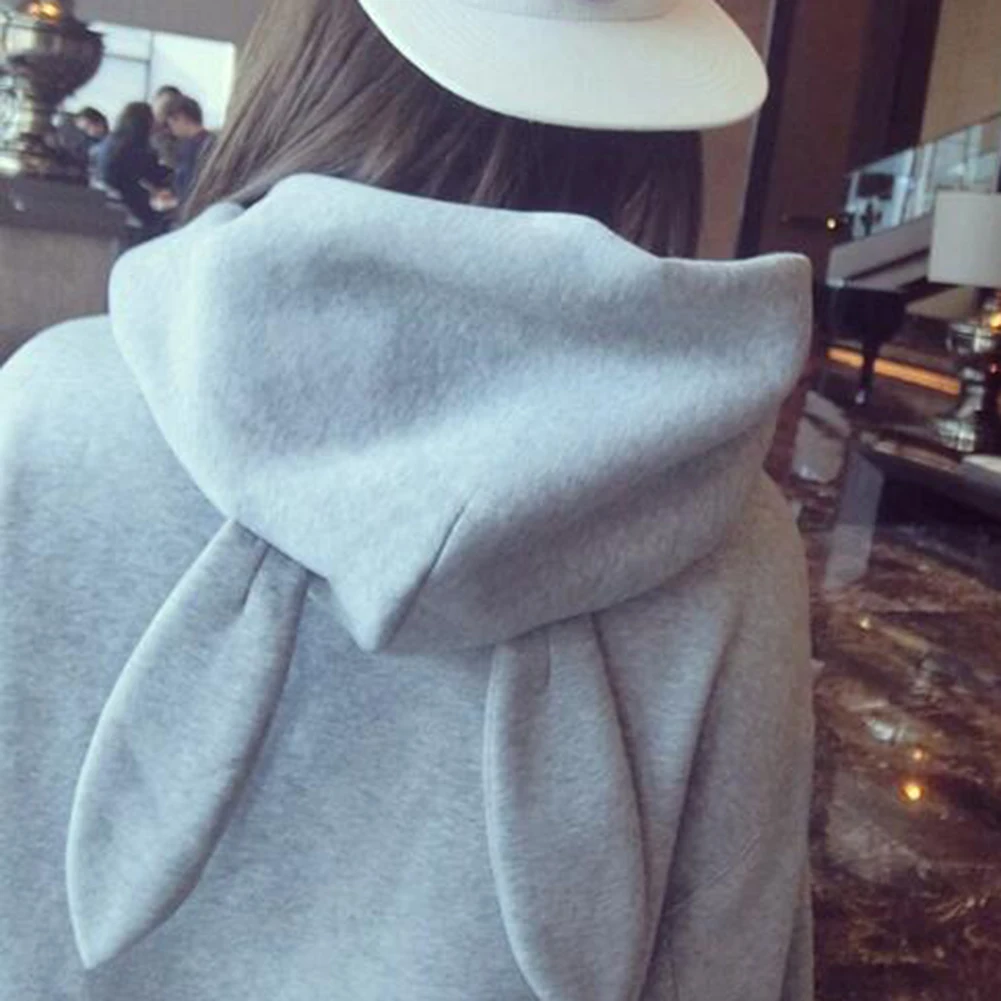 1. куртка с длинными рукавами в Корейском стиле, модная, милая и милая, с капюшоном и заячьими ушками, портативный карман, теплый свитер с флисовой подкладкой.