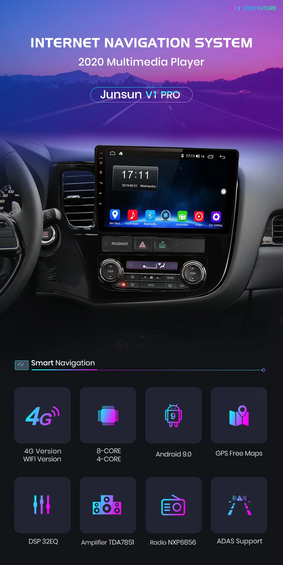 Junsun имеет предустановленные автономные карты и может бесплатно обновляться Об установке карт: Поддержка карт Европа / Северная Америка / Южная Америка / Юго-Восточная Азия / Ближний Восток (мы установим карту в соответствии с вашим адресом, например: Россия, мы установим карту России)