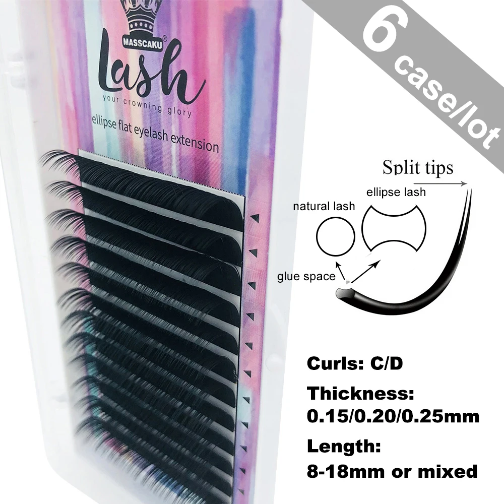 MASSCAKU 6 лотков/партия в виде плоского эллипса для наращивания ресниц разделенные кончики в форме натуральный Светильник Накладные смешанные ресницы оптовая продажа