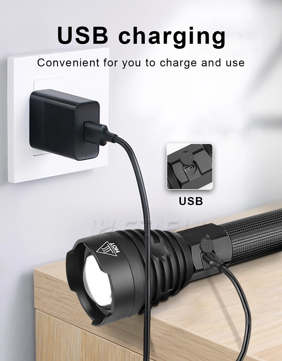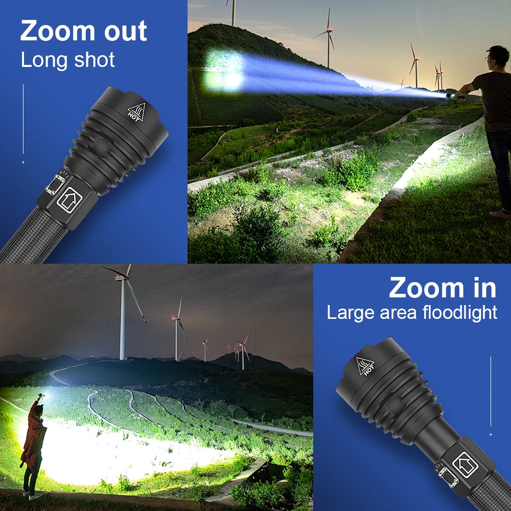 - Дисплей емкости аккумулятора, светодиодный фонарик с увеличением: телескопический зум