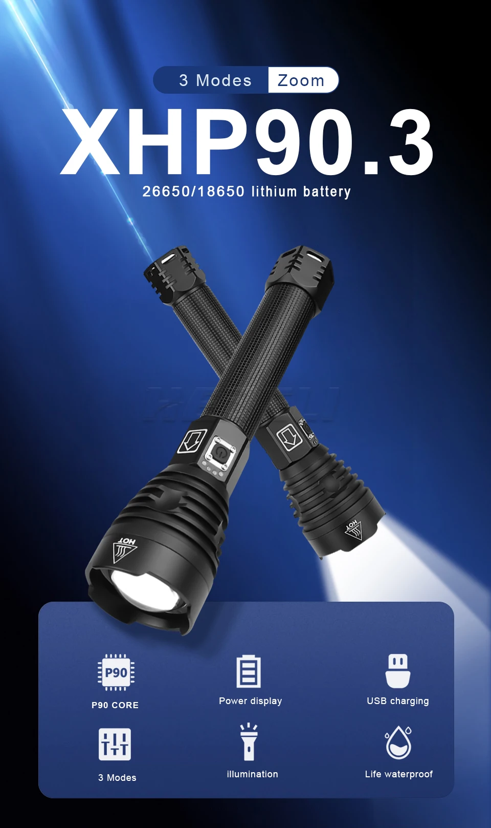 Xhp90.3 500000 Люмен самый высокий мощный светодиодная вспышка светильник usb фонарь xhp70
