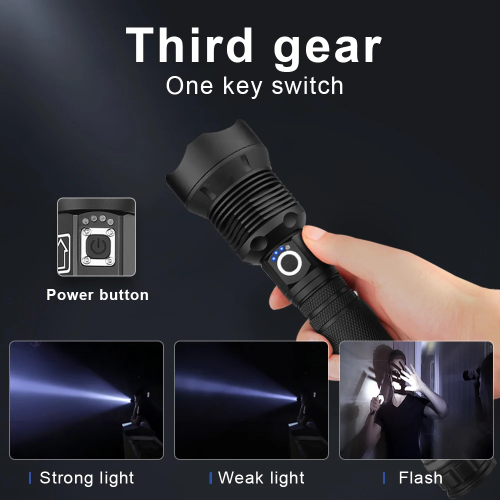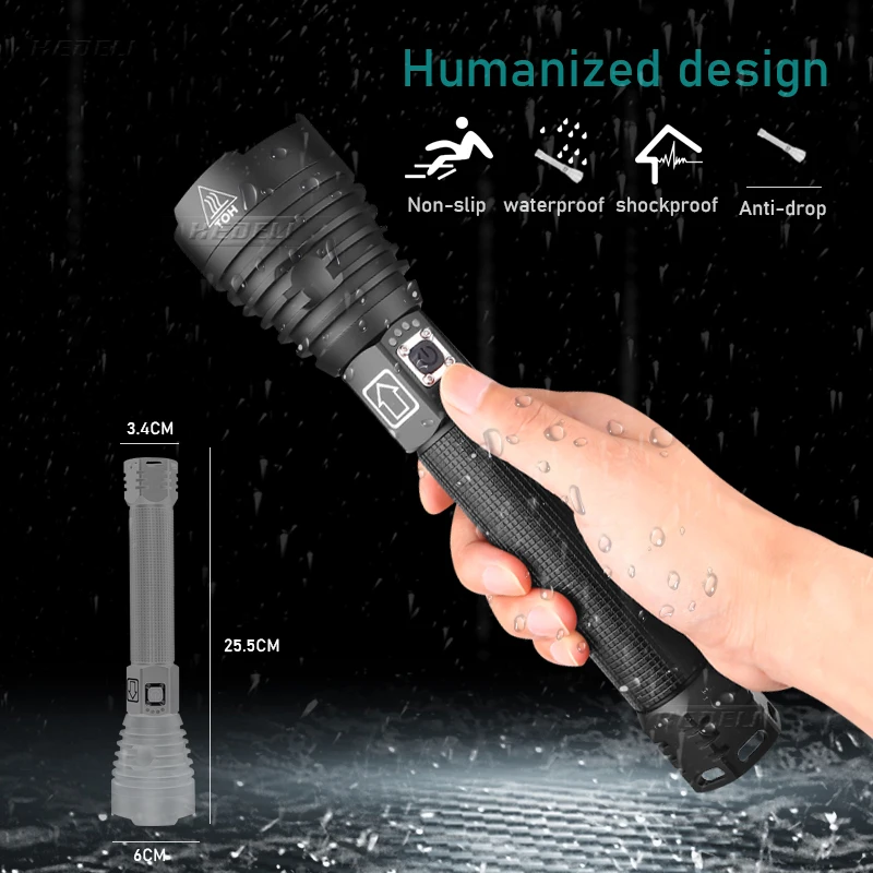 - Самый мощный светодиодный фонарик использует CREE XLamp-XHP90.3-светодиодный, высокий уровень люменов достигается до 450000 лм