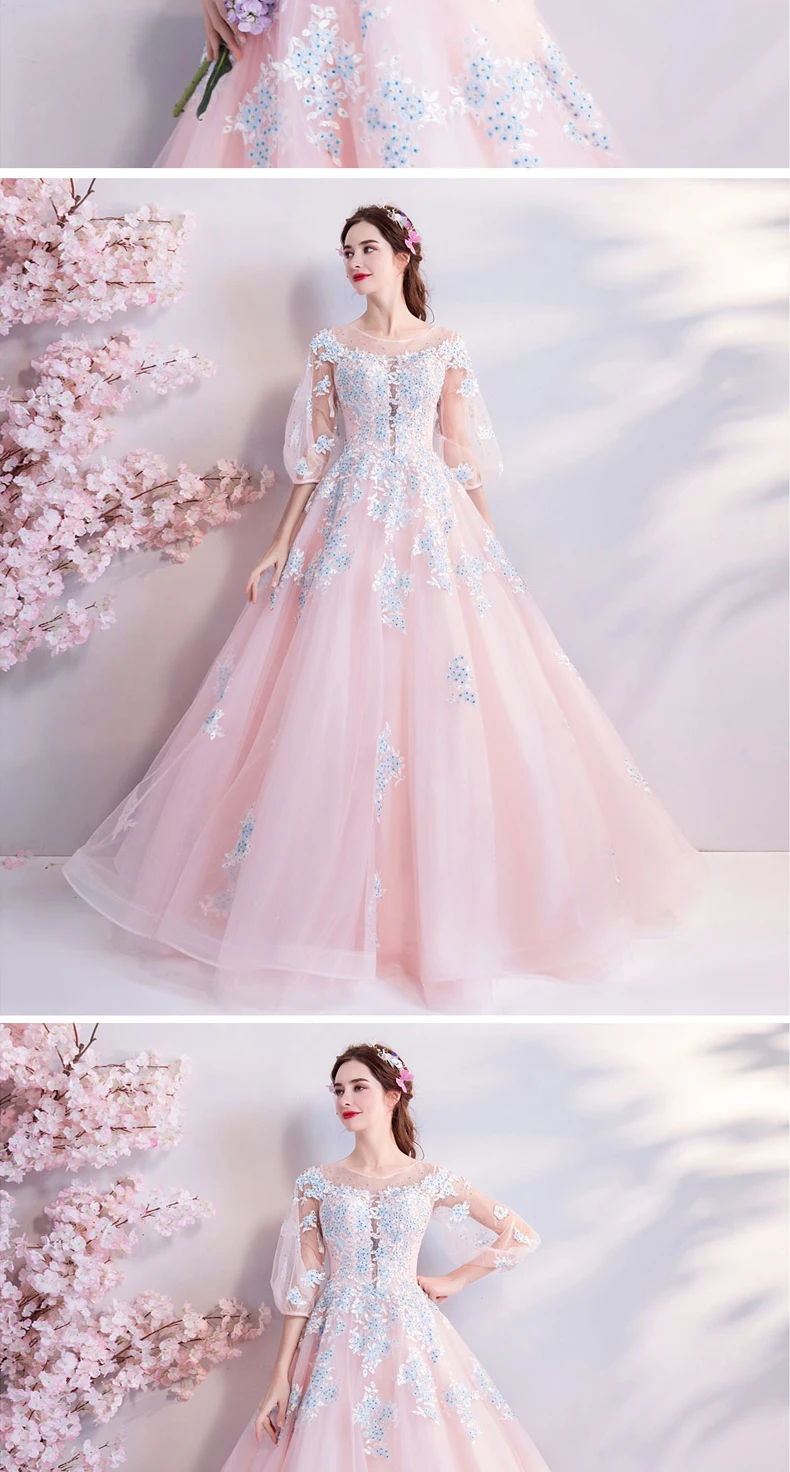 Кружевные бальные платья на заказ 15 лет из тюля с аппликацией официальное