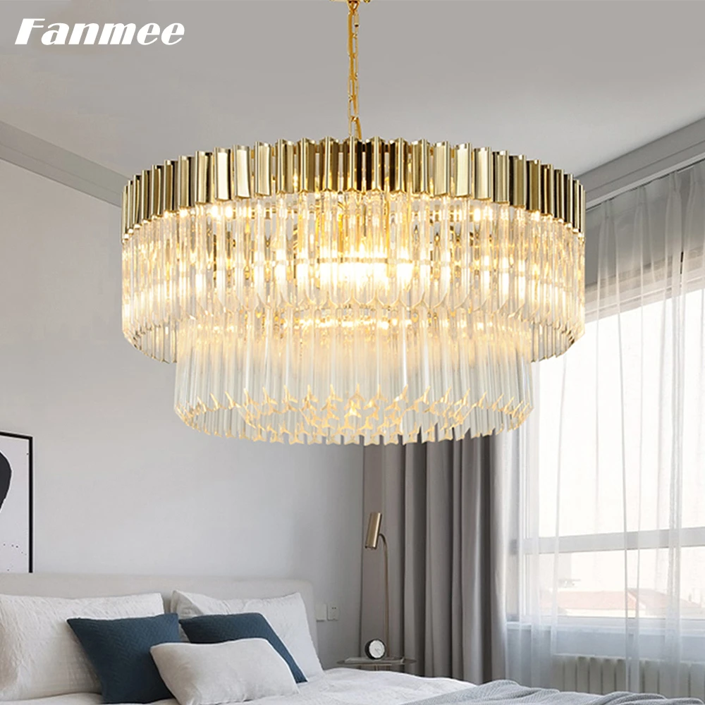 Золотистая оправа, роскошная люстра светильник светодиодный круглый кристалл Гостиная лампа современный светильник приспособление для Спальня Отель Ресторан хоум