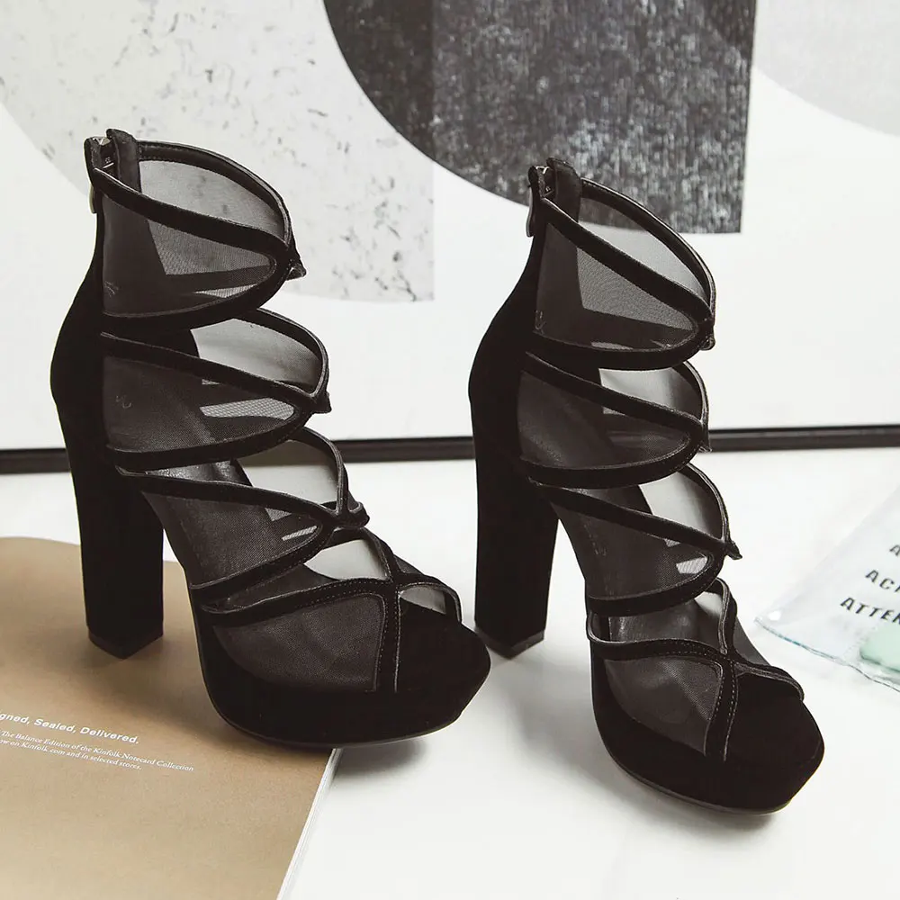 Sgesvier/женские босоножки из флока и сетчатой ткани с открытым носком на высоком толстом каблуке; Сезон лето; Милая стильная модная женская обувь; Размеры 33-43; G320