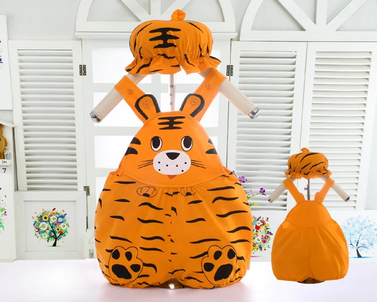 --- Комбинезон для новорожденных девочек; Сезон весна-лето; Одежда для маленьких девочек; Детский костюм с длинными рукавами и изображением тигра; Детский комбинезон с шапкой