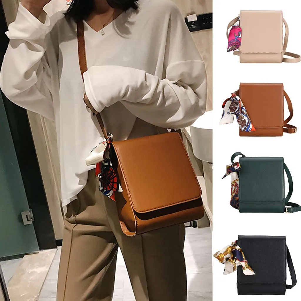 Модная женская однотонная сумка-мессенджер с лентами, украшенная цепочкой через плечо, сумка для телефона