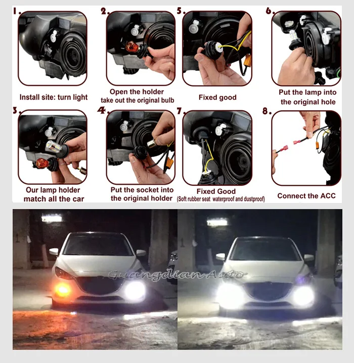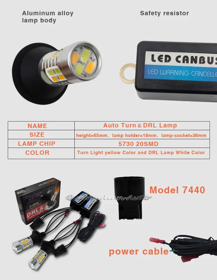 Tcart 7440 T20 WY21W DRL дневные ходовые огни и указатель поворота T25 3157 Ксеноновая лампа белый + янтарный PY21W 1156 ДХО с поворотными лампами гнездо: 7440 = T20 1156 150 ° = PY21W 1157 1156 3156 3157 = T25 7443 Ходовые огни drl с поворотными огнями чип: 5730 чип, 20smd/шт Дневные ходовые огни цвет: белый/красный/синий/ледяной/розовый 7440 T20 drl огни с поворотным сигналом мощность: 10 Вт/шт. 20 Вт 1156 150 ° drl огни с поворотным светом Сертификация: ce T25 3157 drl огни с поворотным сигналом срок службы: 50000 часов СВЕТОДИОДНЫЕ указатели поворота с drl Цвет света: желтый СВЕТОДИОДНЫЕ указатели поворота с drl Водонепроницаемость: IP65 ДХО с лампами указателей поворота Гарантия: 1 год Независимое производство исследований и разработок: 1. Используется высокотемпературный термостойкий алюминий, водонепроницаемая изоляция линий электропитания и разъемов. Продукт нагревается лучше и долговечнее 2. Встроенный светодиодный драйвер постоянного тока, может эффективно предотвратить удары освещения, Скачки напряжения, перегрузки по току, защита от перенапряжения, срок службы светодиодов дольше. 3. Включите низкий свет ночью, дневные ходовые огни автоматически выключаются, В соответствии с европейскими стандартами.