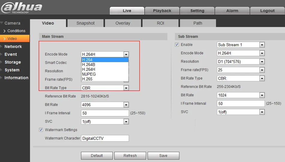 | Дополнительный поток: D1(1 ~ 25fps) |