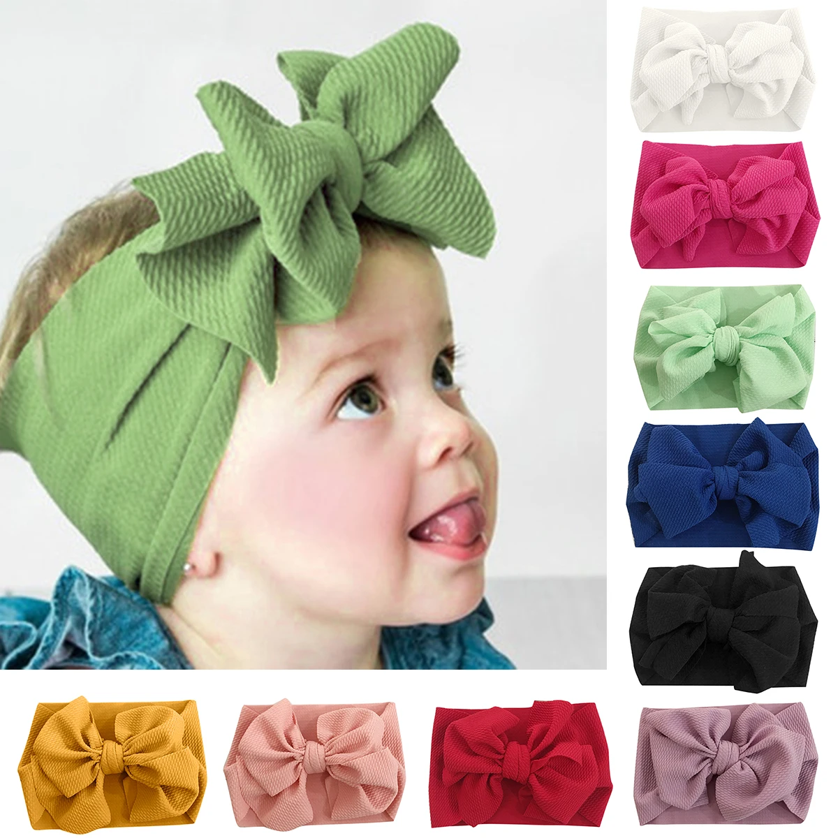 Регулируемая повязка на голову с большим бантом, Детская повязка на голову, топ, повязки с узелком, большой бант, тюрбан для волос, повязка на голову для новорожденных, большие банты для волос для девочек