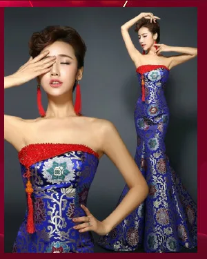 Красные вечерние платья в китайском стиле длинное Новое сексуальное Восточное