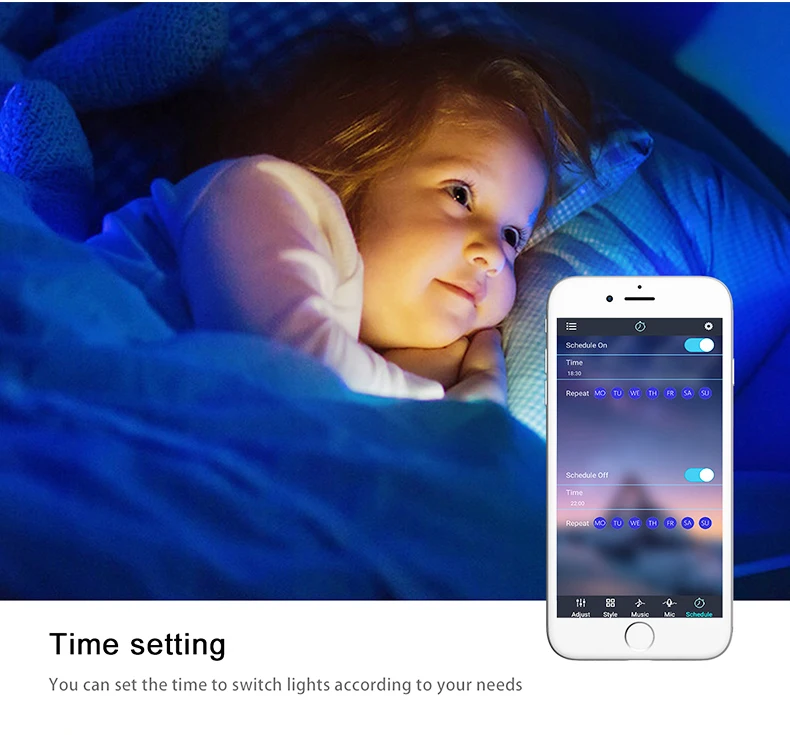 Настройка времени: настраиваемая функция синхронизации позволяет выбрать, когда и в какие дни вы хотите включить/выключить светильник. Вы никогда не будете беспокоиться, если вы забудете выключить светильник или нет, установите время на свой веревочный светильник s, когда вы просыпаетесь по утрам, чтобы сделать светильник прекрасным днем.