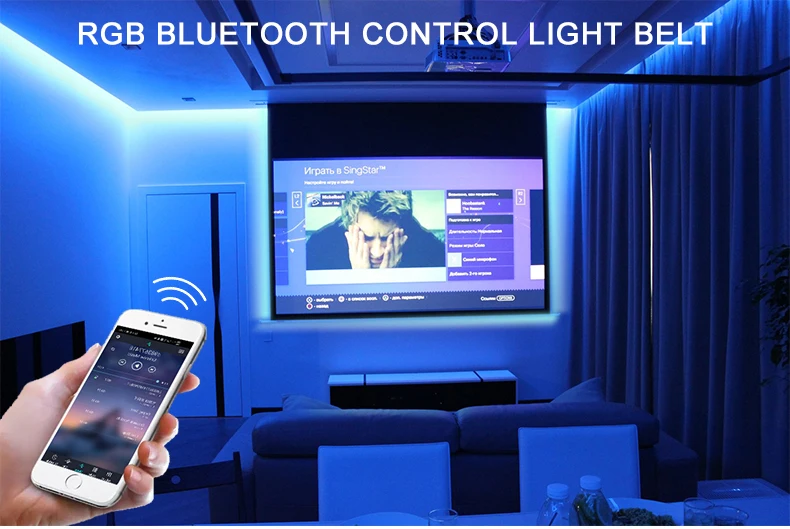 [Управление через приложение] светодиодный фонарик управляется через приложение, пульт дистанционного управления и контроллер управления. С помощью приложения, вы можете свободно выбрать контроль 16 миллионов цветов. Светильник с bluetooth-полоской имеет смарт-Режим музыки, который создает романтику, расслабление, вечерние атмосферы с музыкой, светильник s цвет изменится с помощью музыки или микрофона.