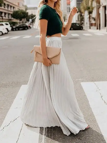 Стиль: Сексуальная шифоновая плиссированная для катания на коньках длинная юбка
