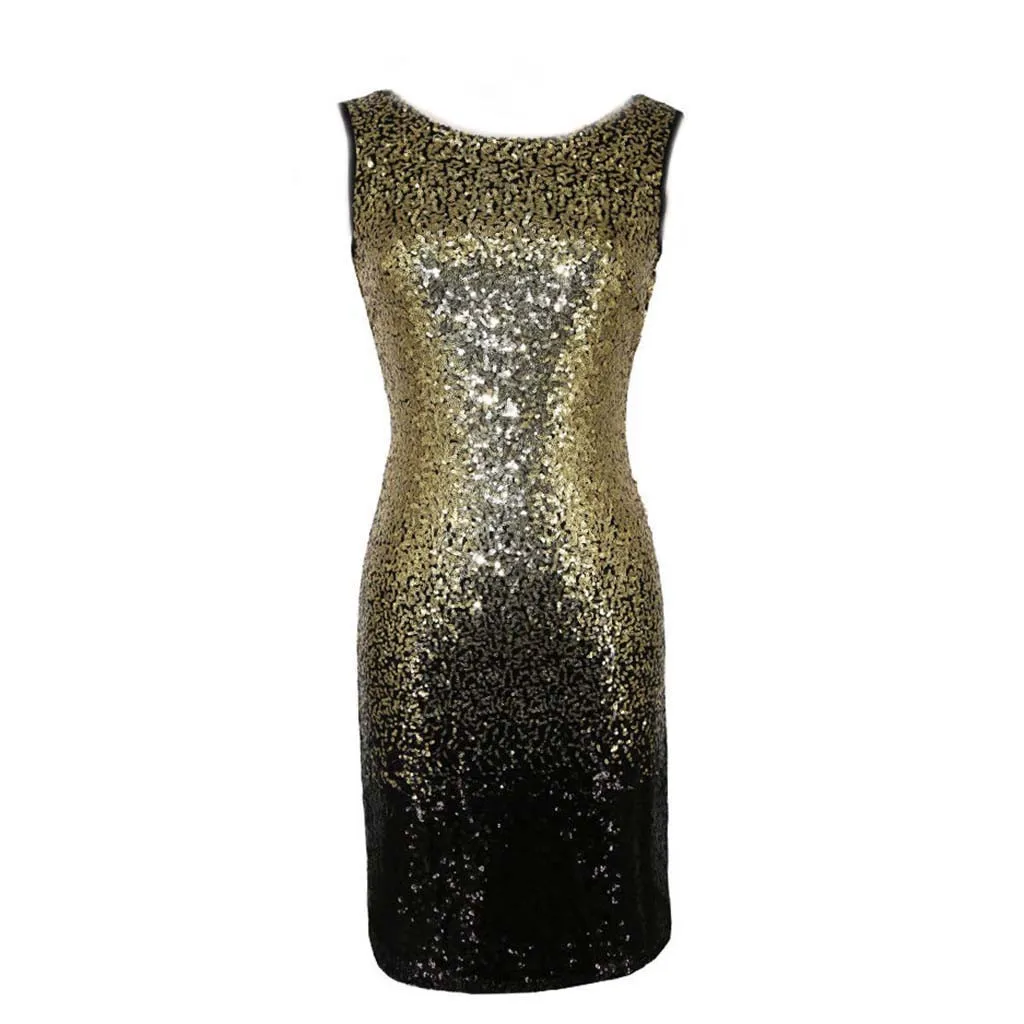 Женское сексуальное однотонное блестящее мини-платье без рукавов с блестками