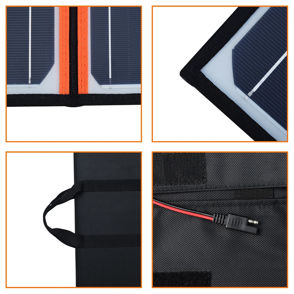 * Складная солнечная панель * Портативный и легкий * Выход USB для зарядки мобильных телефонов * Водонепроницаемость дизайн * Можно заряжать аккумулятор 12 В и Электронный USB одновременно * Используется для зарядки аккумулятора, кемпинга, путешествий, улицы и т. д. * Панель солнечной батареи из монокристаллического кремния зарядное устройство