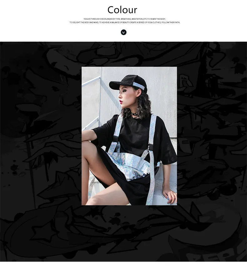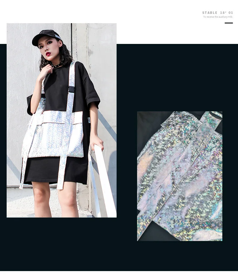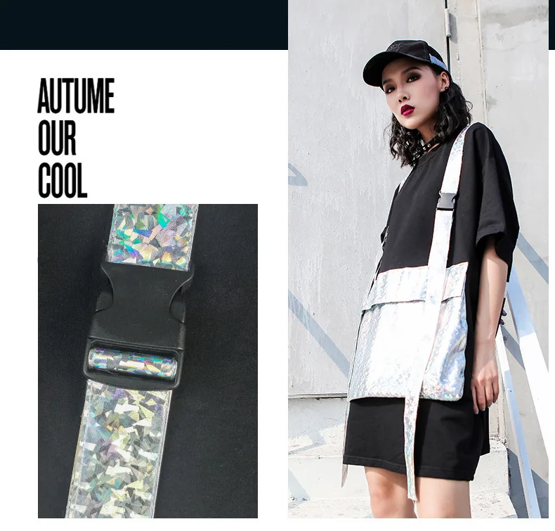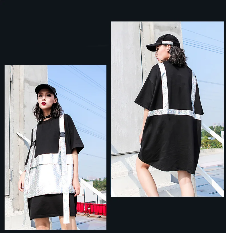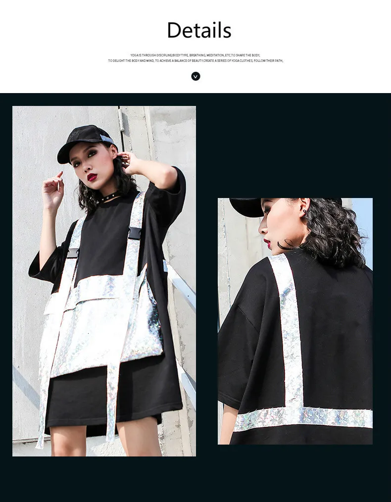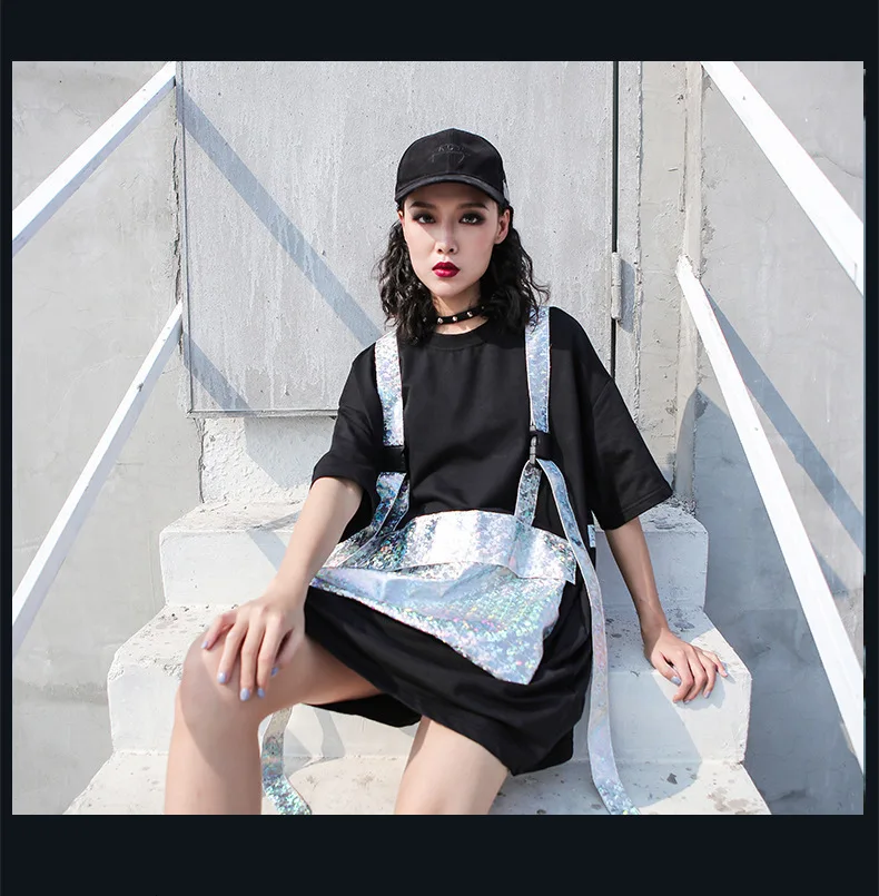 Роскошная длинная футболка в стиле панк с блестящими карманами в Корейском стиле