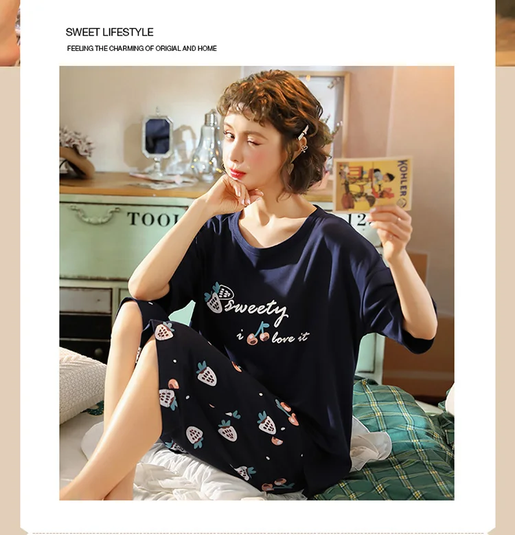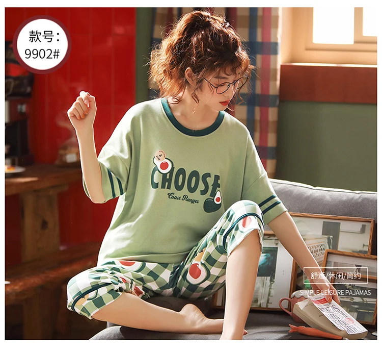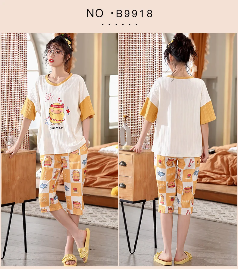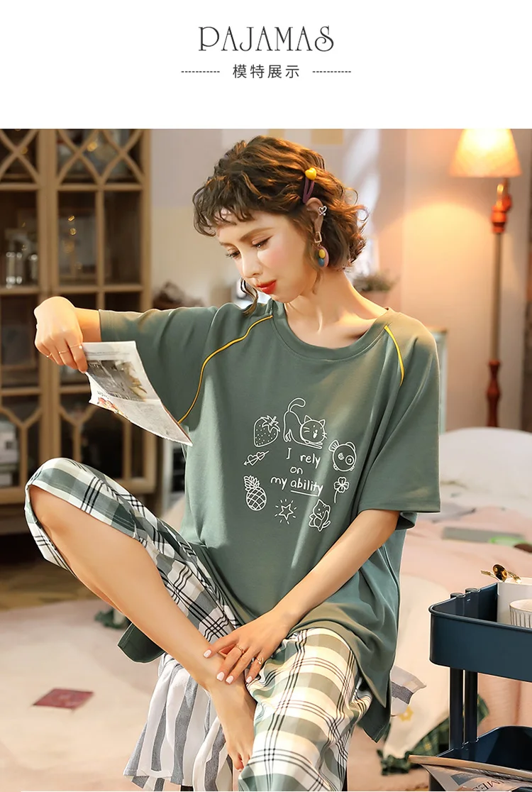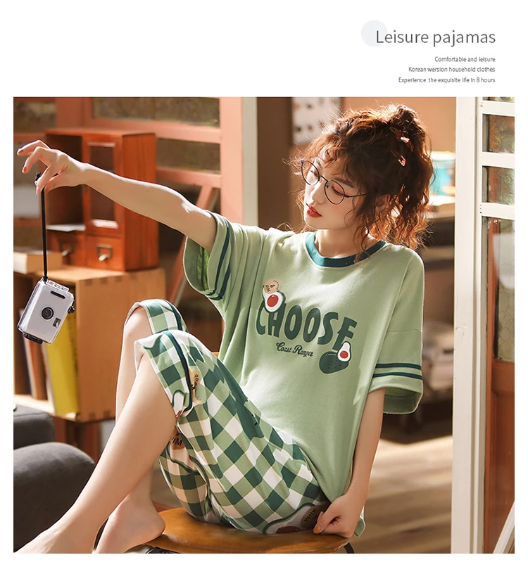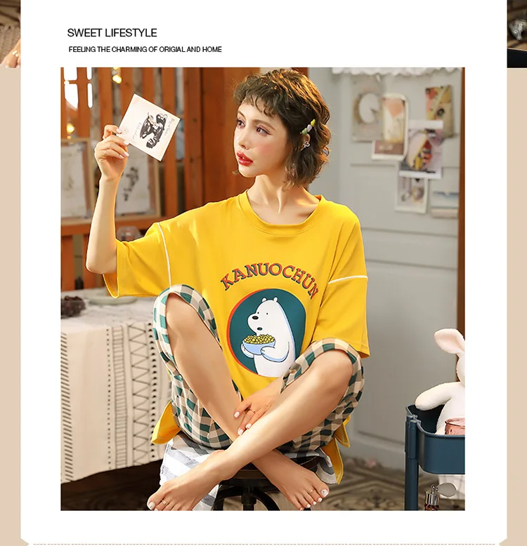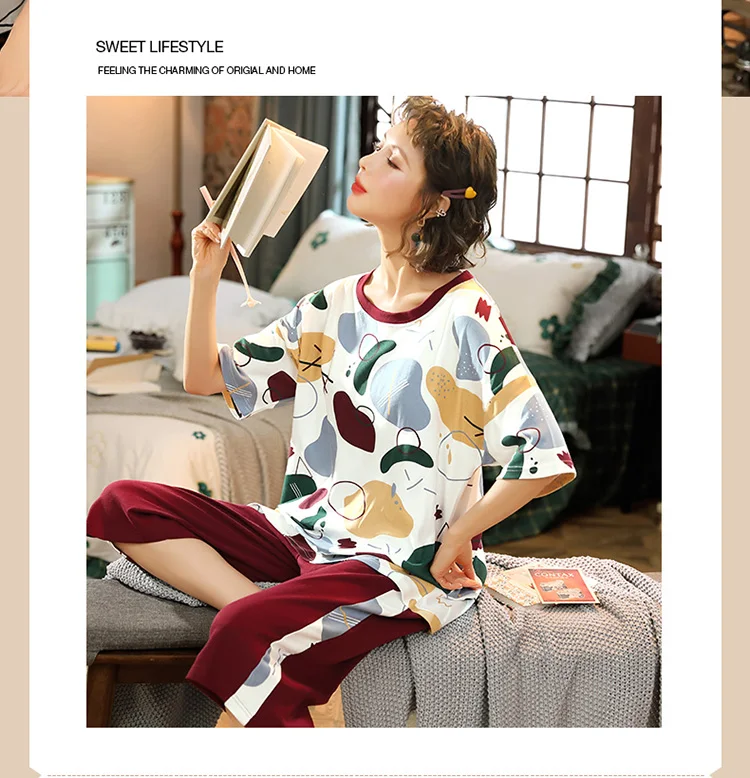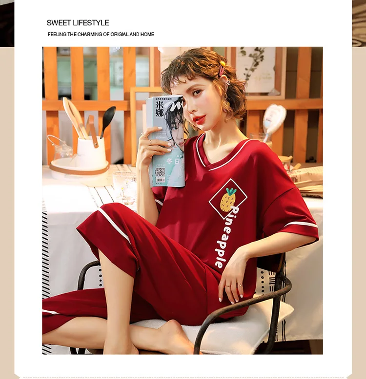 Пуловер с коротким рукавом штаны до икры Пижама пижамы для девушек и женщин