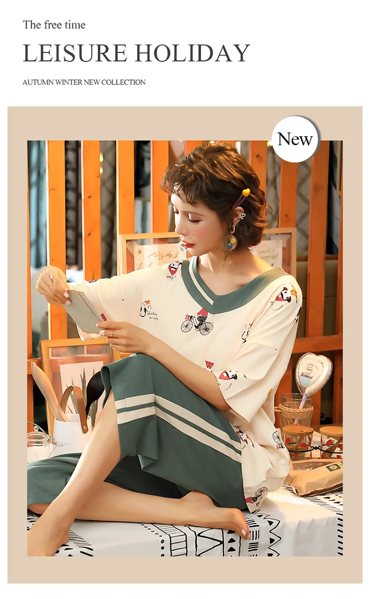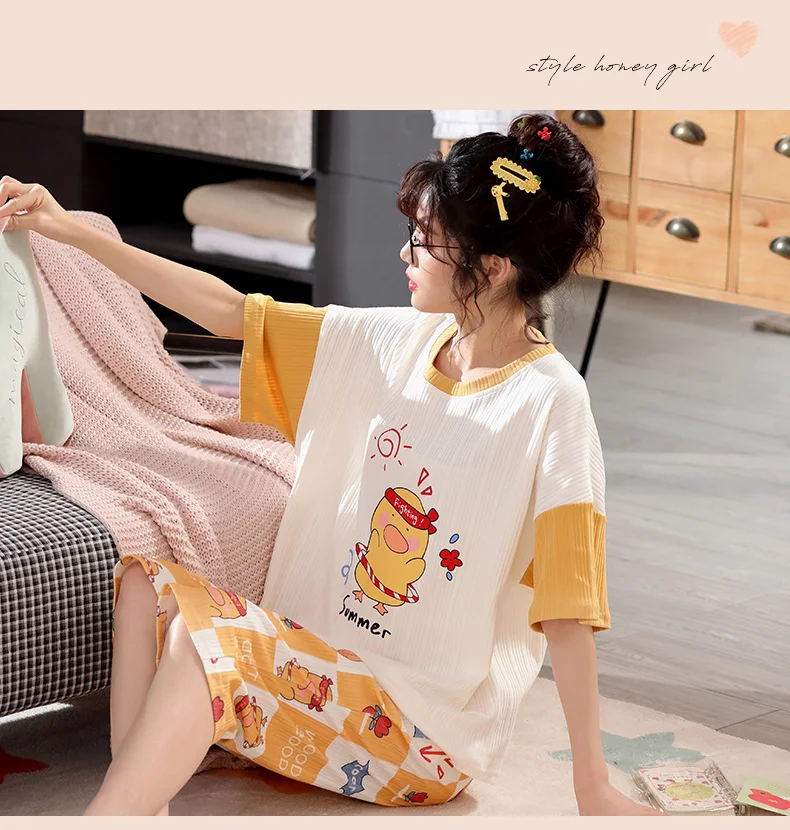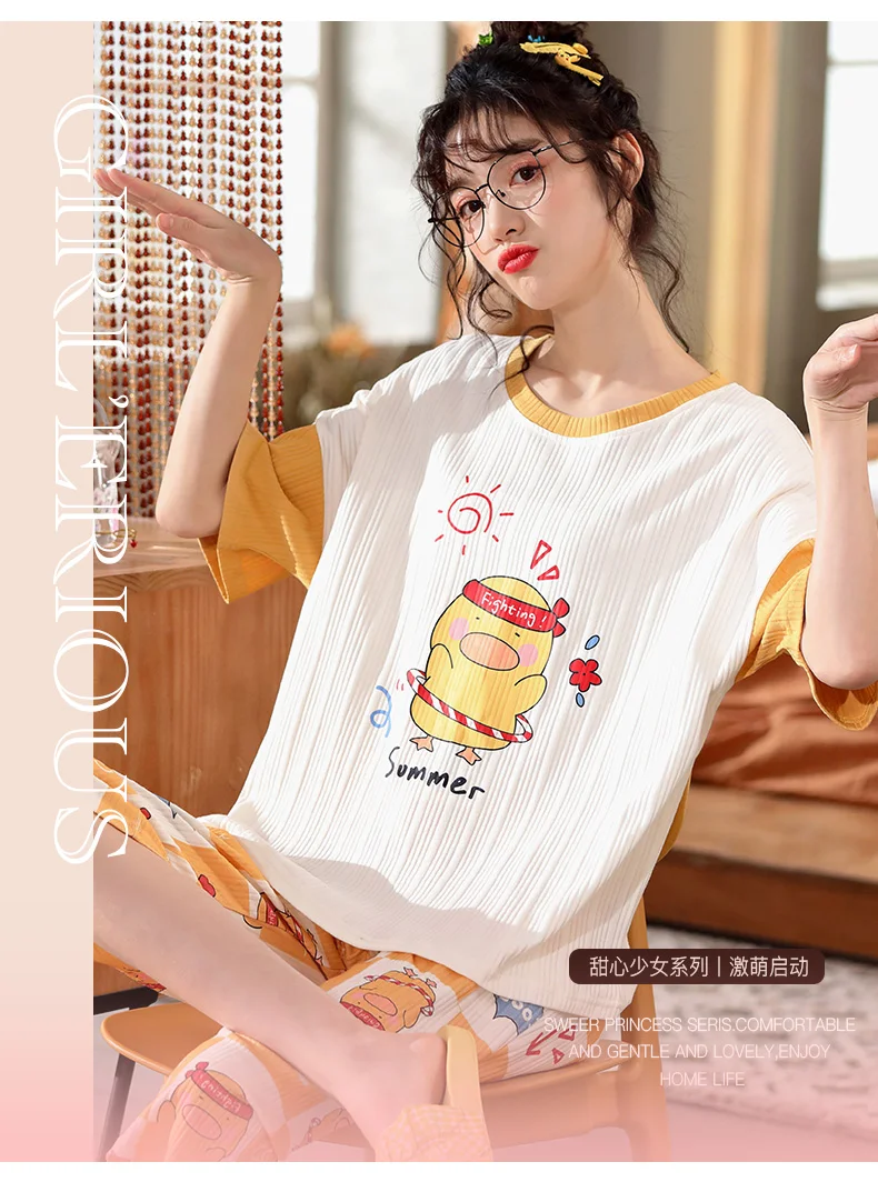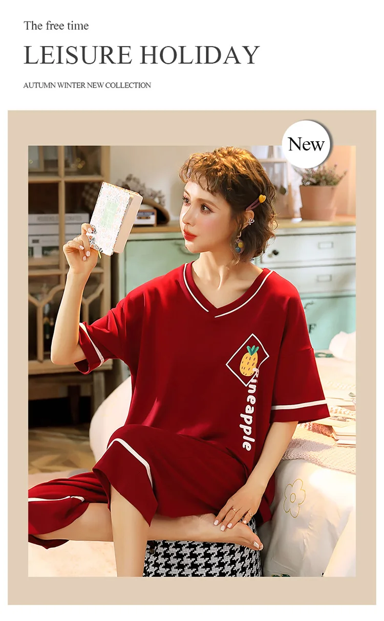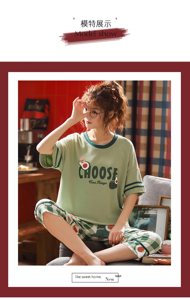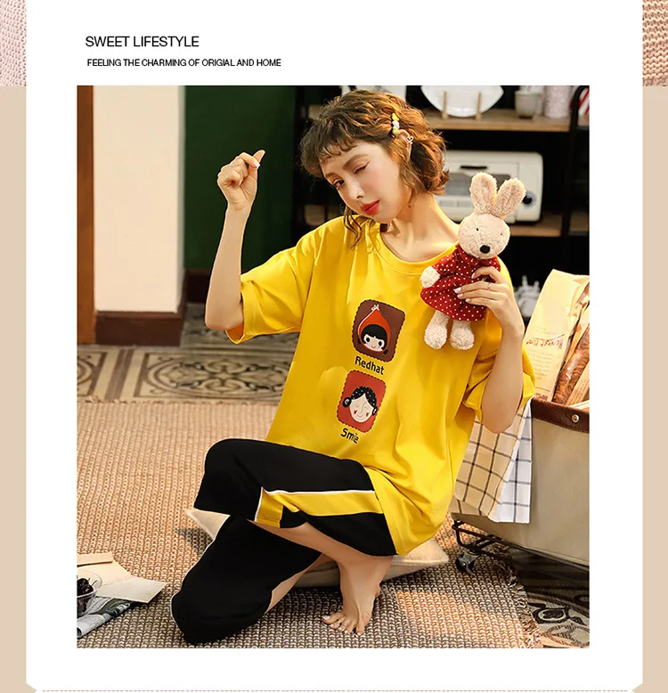 Пуловер с коротким рукавом штаны до икры Пижама пижамы для девушек и женщин