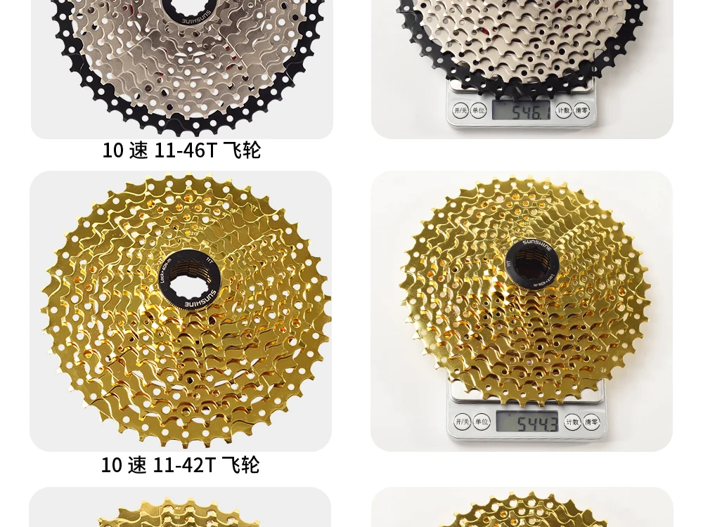 [Вес] 10 скорость 11-40 T измеряется 513 г; 11-42 T измеряется 526 г; 11-46 T измеряется 545 г; 11-50 T измеряется 577 г;