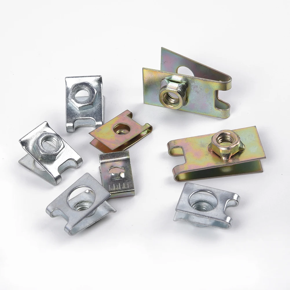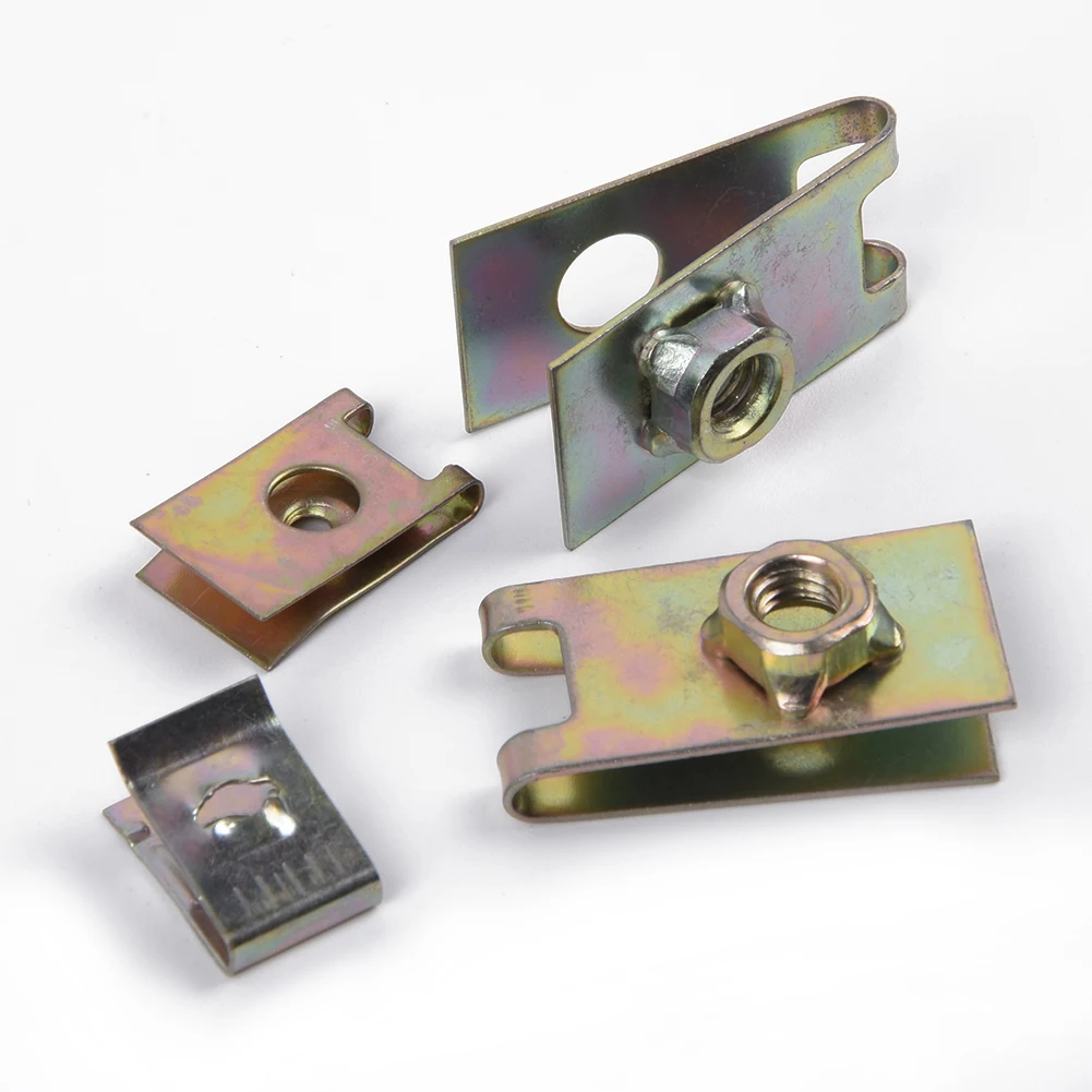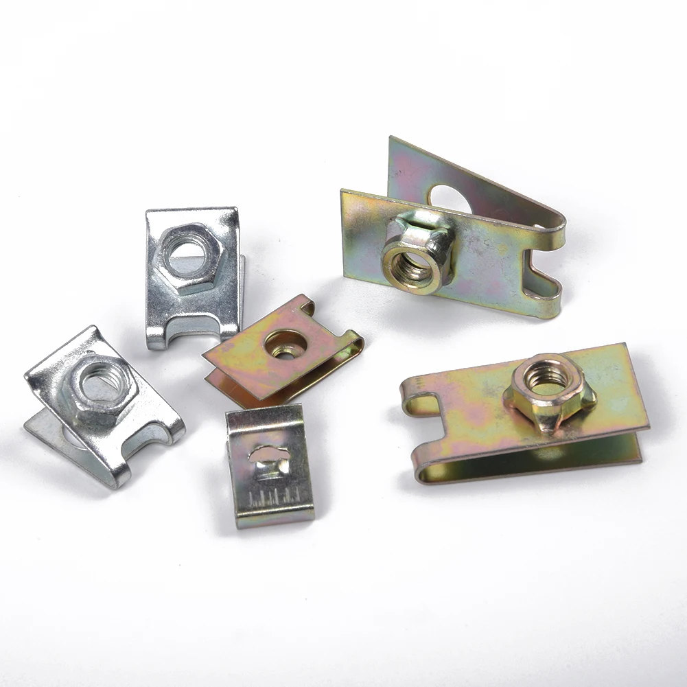 100 шт. автомобильный металлический u-образный Тип зажимы для прокладок авто крепежа кузова дверь Панель отделка под винт U-прокладка гайки зажима Универсальный