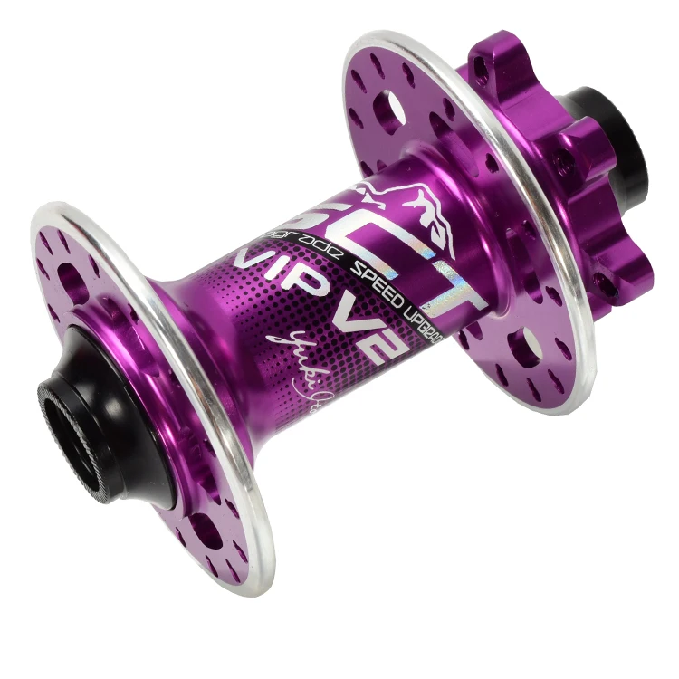 TE-02 передний барабан Материал AL7075 алюминиевый сплав > Отверстие полосы: 32 H/14G > Подшипник: 2 > Ширина вилки: 100 мм > Крышка вала: быстрый выпуск и 15 мм через > Вес: QR-155g/Thru-152g Цвет: черный/красный/фиолетовый