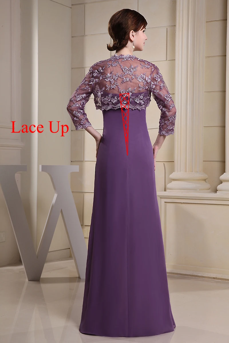 Длинные фиолетовые платья с рукавами 3/4 размера плюс для матери невесты на свадьбу, вечерние платья с кружевным жакетом, вечернее платье на три четверти, MO89