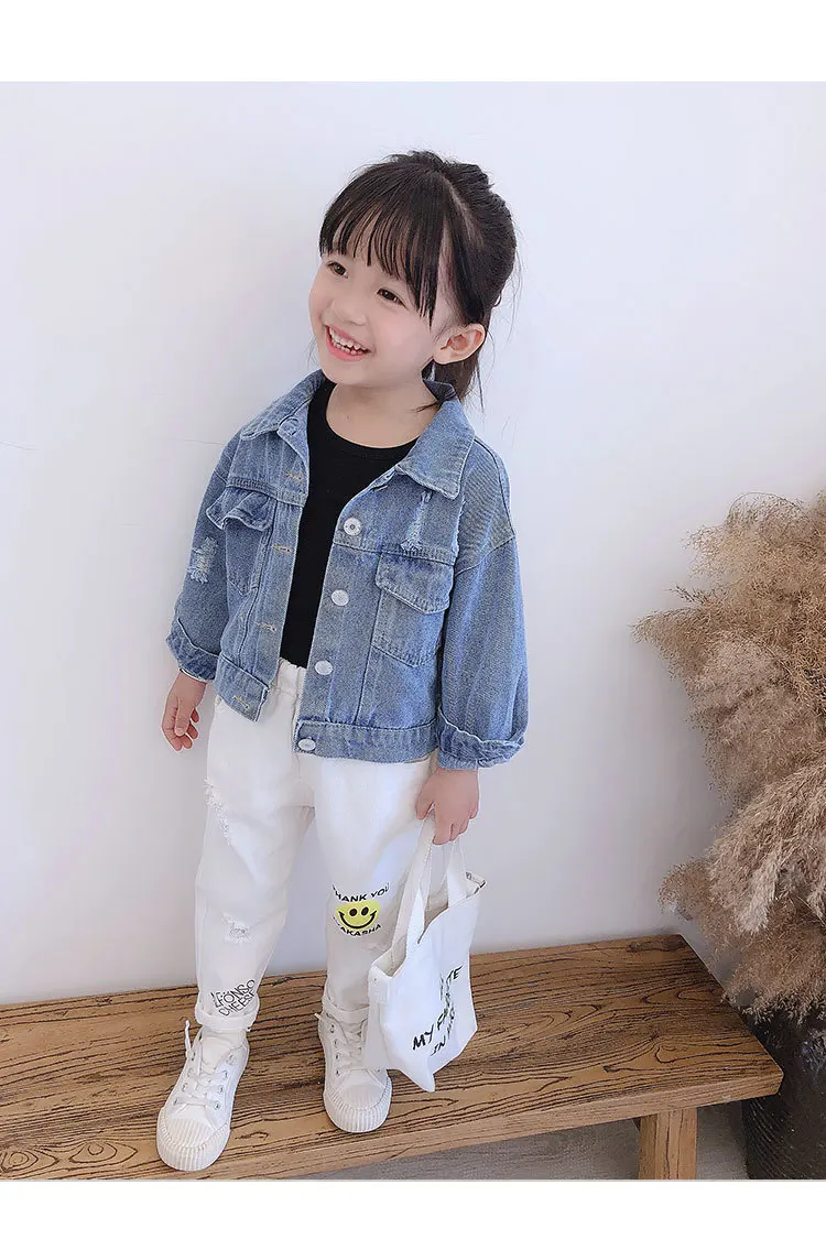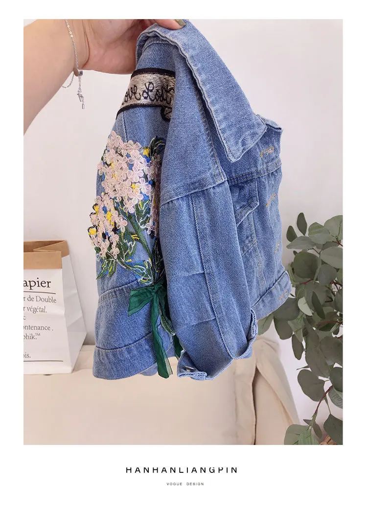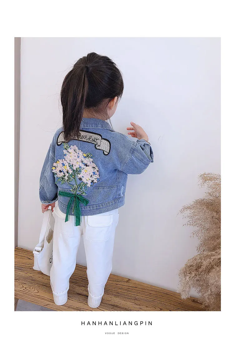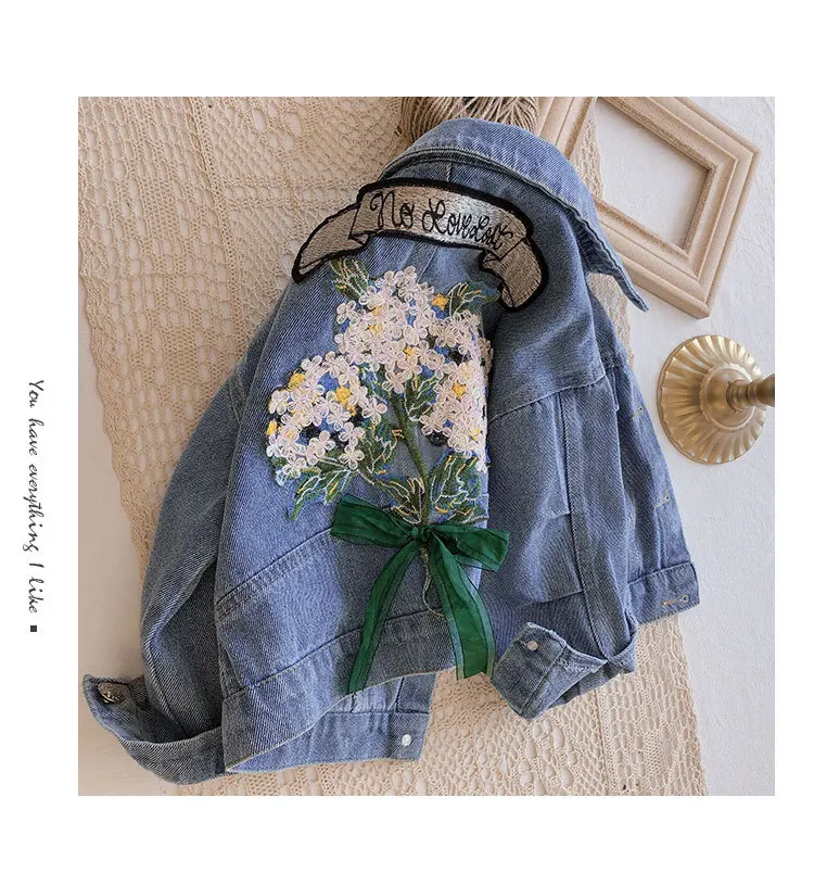 Джинсовая куртка для девочек, Осенняя детская одежда, верхняя одежда для маленьких девочек, пальто, куртки, детские топы, джинсовая одежда, джинсовое пальто с цветочной вышивкой