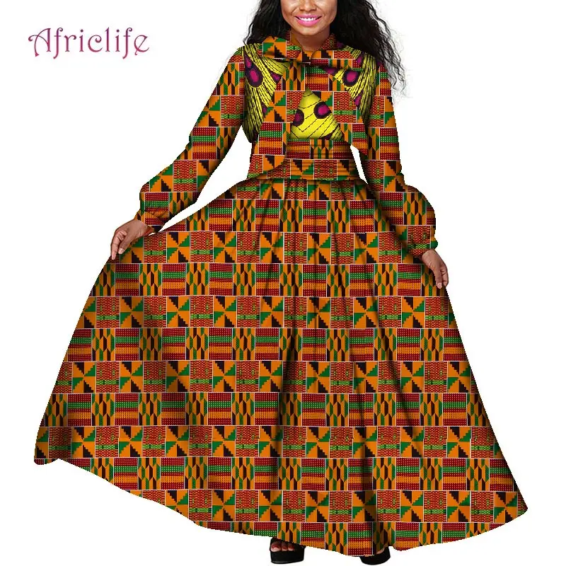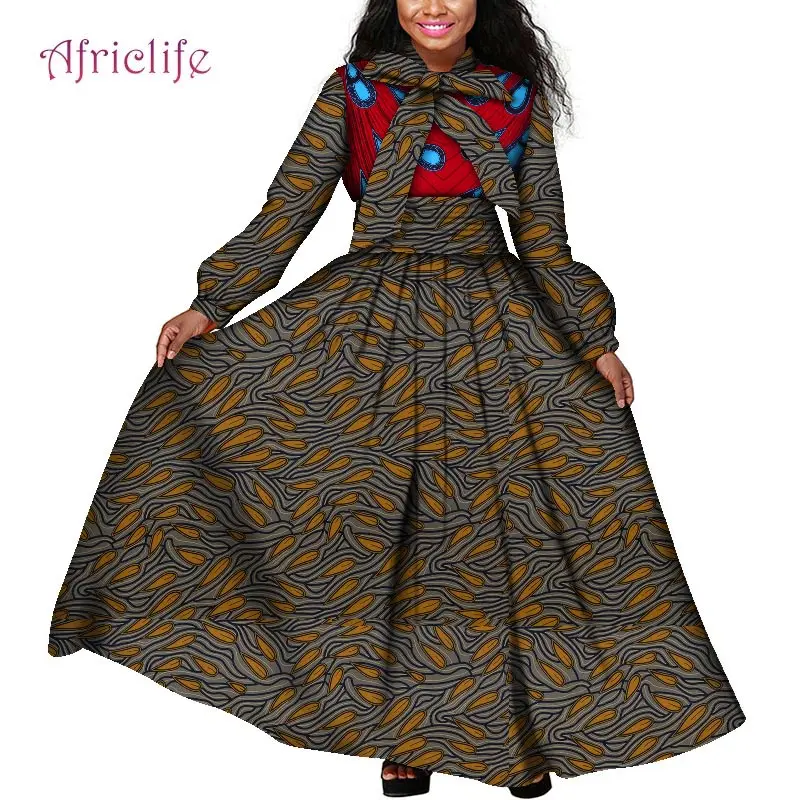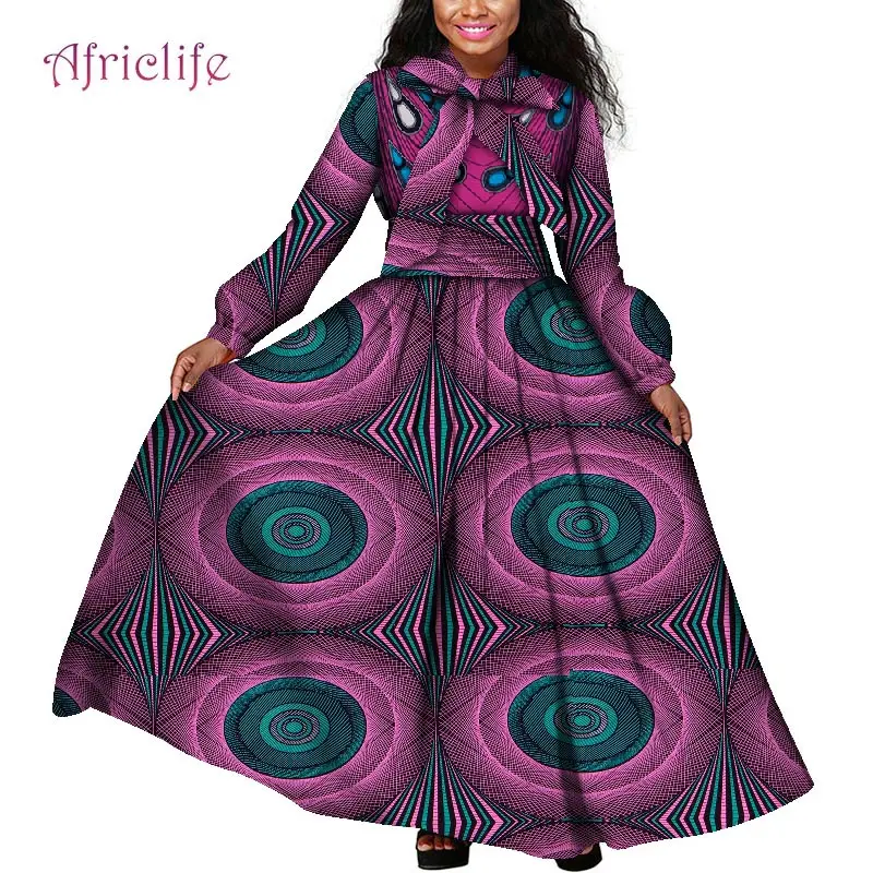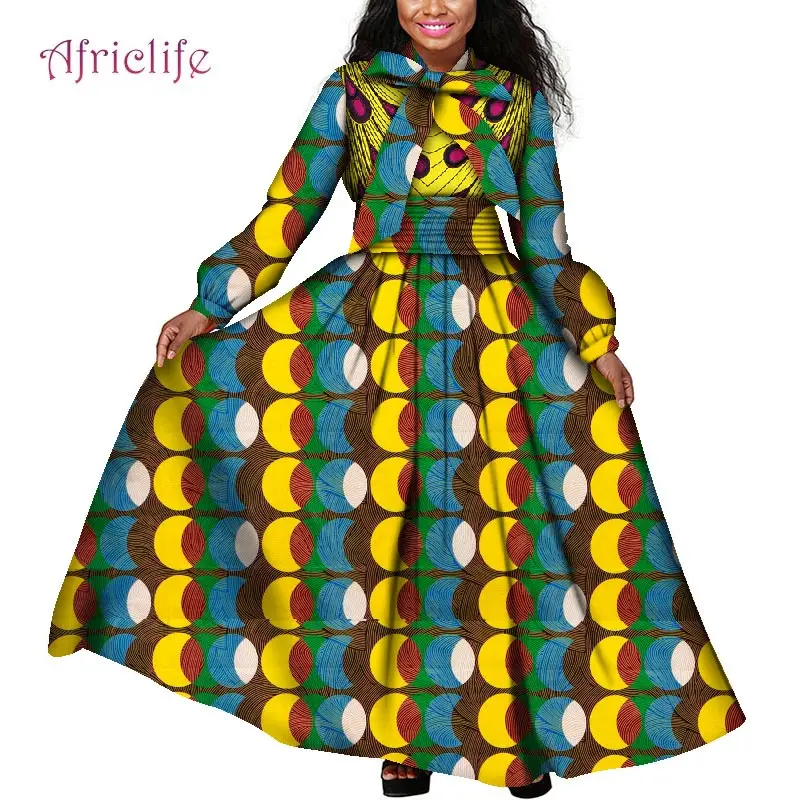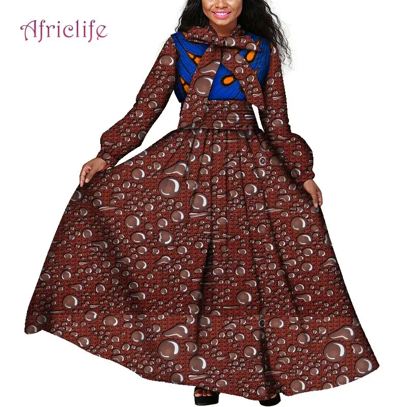 Платья макси больших размеров африканская одежда с вощеным принтом ткань Дашики Анкары модная африканская Весенняя женская одежда WY4159