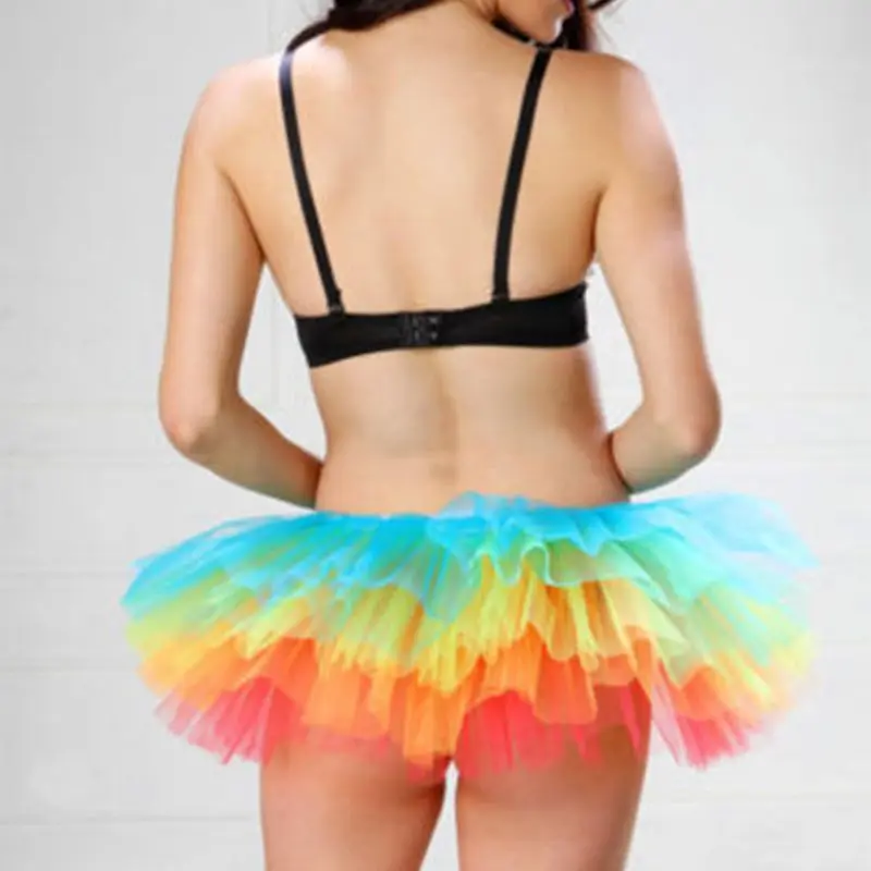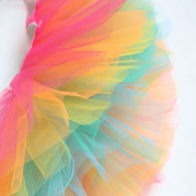 Штаны средней посадки для детей, эластичная резинка на талии, длиной выше колена мини-платье 5-слойная дизайнерская, Необычные Радужная красочная юбка-пачка, пышная, пышное.