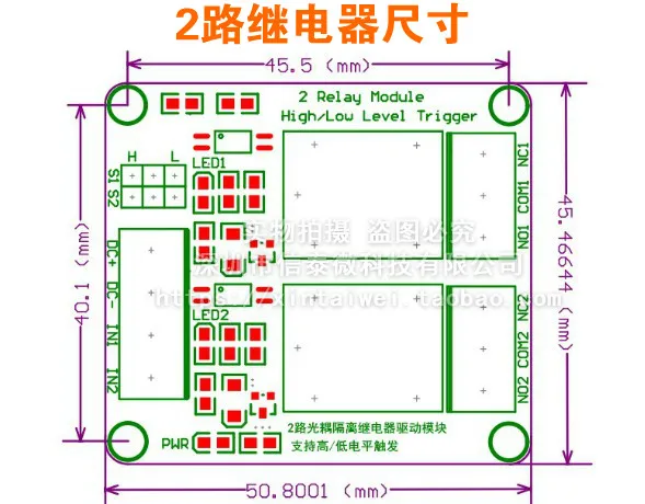 Описание модуля:1, модуль использует подлинное реле высокого качества, максимальная нагрузка нормально открытого интерфейса: AC 250 В/10A, DC 30 В/10A;2. Использование изоляции патча оптопары, сильная способность вождения, стабильная производительность; Триггер тока 5ма;3. Рабочее напряжение модуля 5V12V24V4. Модуль может быть запущен перемычкой для установки высокого или низкого уровня;5. Отказоустойчивый дизайн, даже если линия управления сломана, реле не будет двигаться;6, индикатор питания (зеленый), индикатор состояния реле (красный)7. Дизайн интерфейса удобен для пользователя, все интерфейсы могут быть напрямую подключены через клеммный блок, очень удобно8, с 4 крепежными отверстиями для болтов, отверстие 3,1 ммДва интерфейса модуля:1. DC +: подключите положительный Полюс источника питания (напряжение требуется реле)2, DC-: подключен к отрицательному полюсу источника питания3, в: может управлять реле, чтобы тянуть высоко или низкоРелейный выход:1. Номер: реле, как правило, открытый интерфейс, реле приостановлено до всасывания, и короткий соединен с COM после всасывания.2, COM: общий интерфейс реле3. NC: реле обычно закрывает интерфейс, и реле замыкается до COM, прежде чем всасывание закрыто.Высокий и низкий выбор триггера:1. Когда перемычка укорочена до низкого, она срабатывает на низком уровне;2. Когда перемычка коротка до высоты, она срабатывает на высоком уровне.