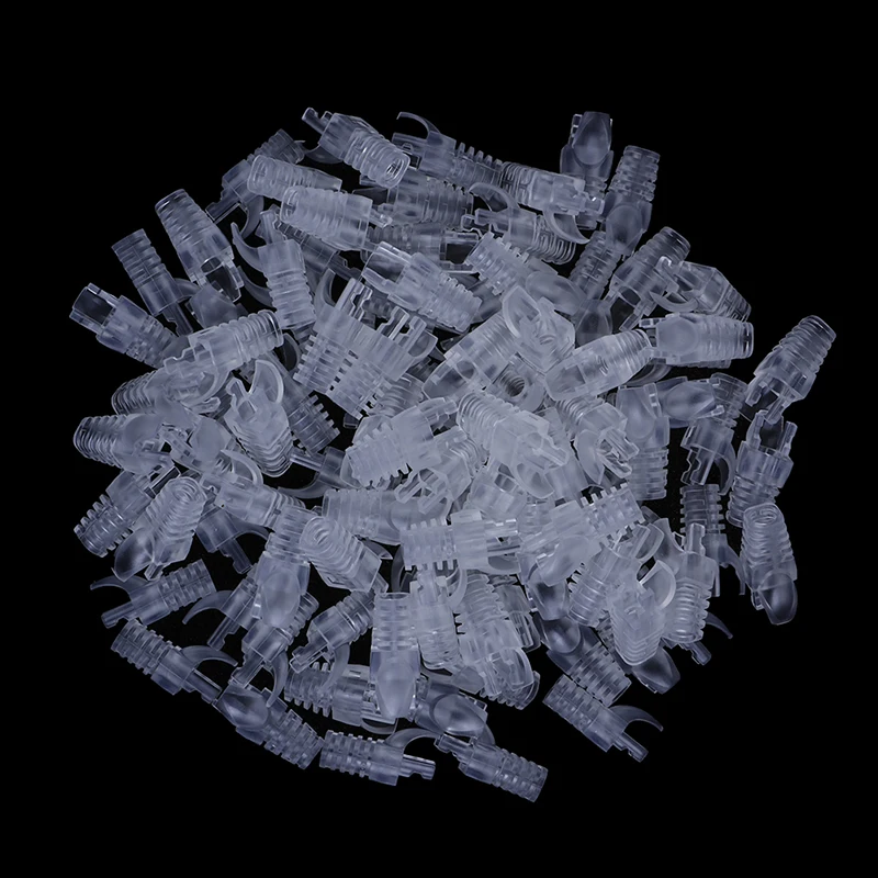 100 шт. cat6 rj45 Ethernet крышка разъема (заглушка), ПК, с двойной пряжкой, коготь кабель с прозрачной изоляцией защитной оболочкой