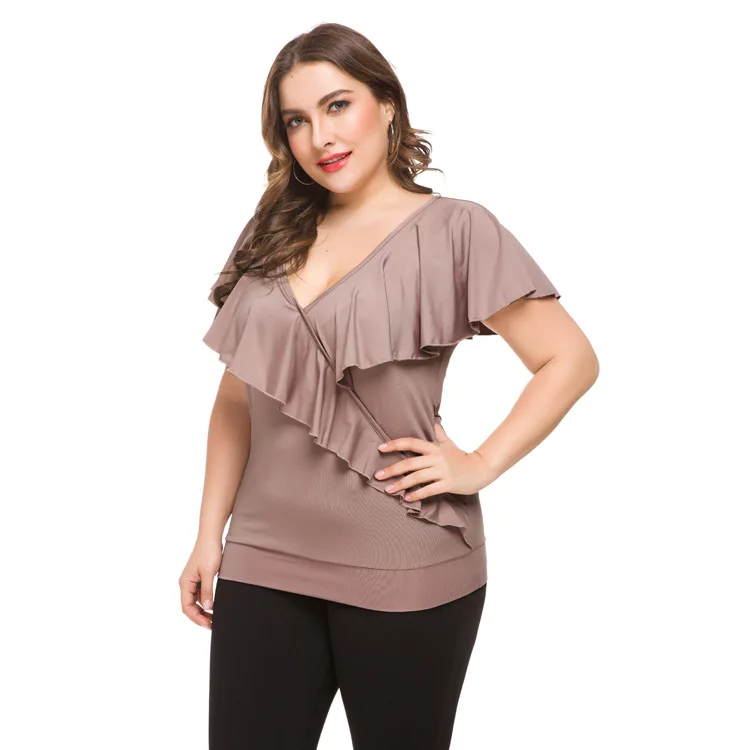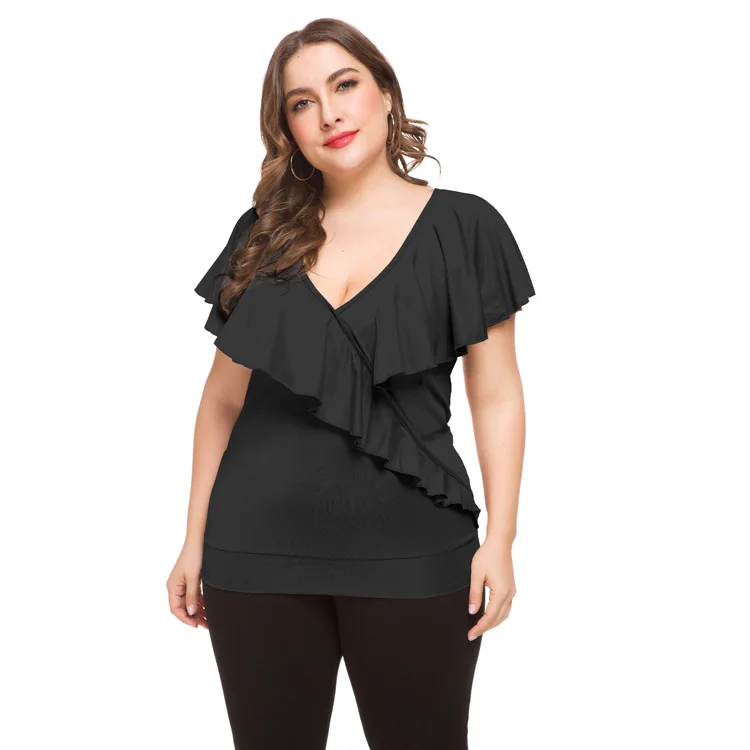 Женские топы размера плюс, летняя блузка Бохо С v-образным вырезом, коротким рукавом и оборками, Женская Туника красного и черного цвета, 2019